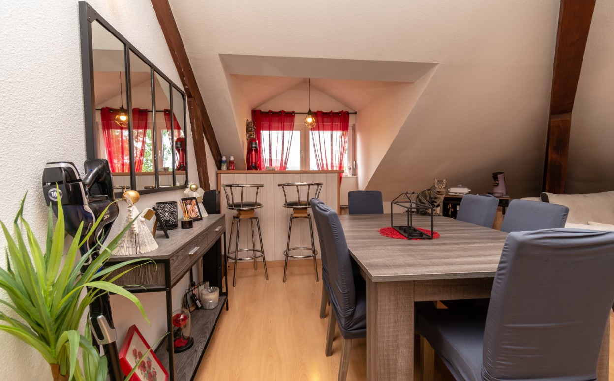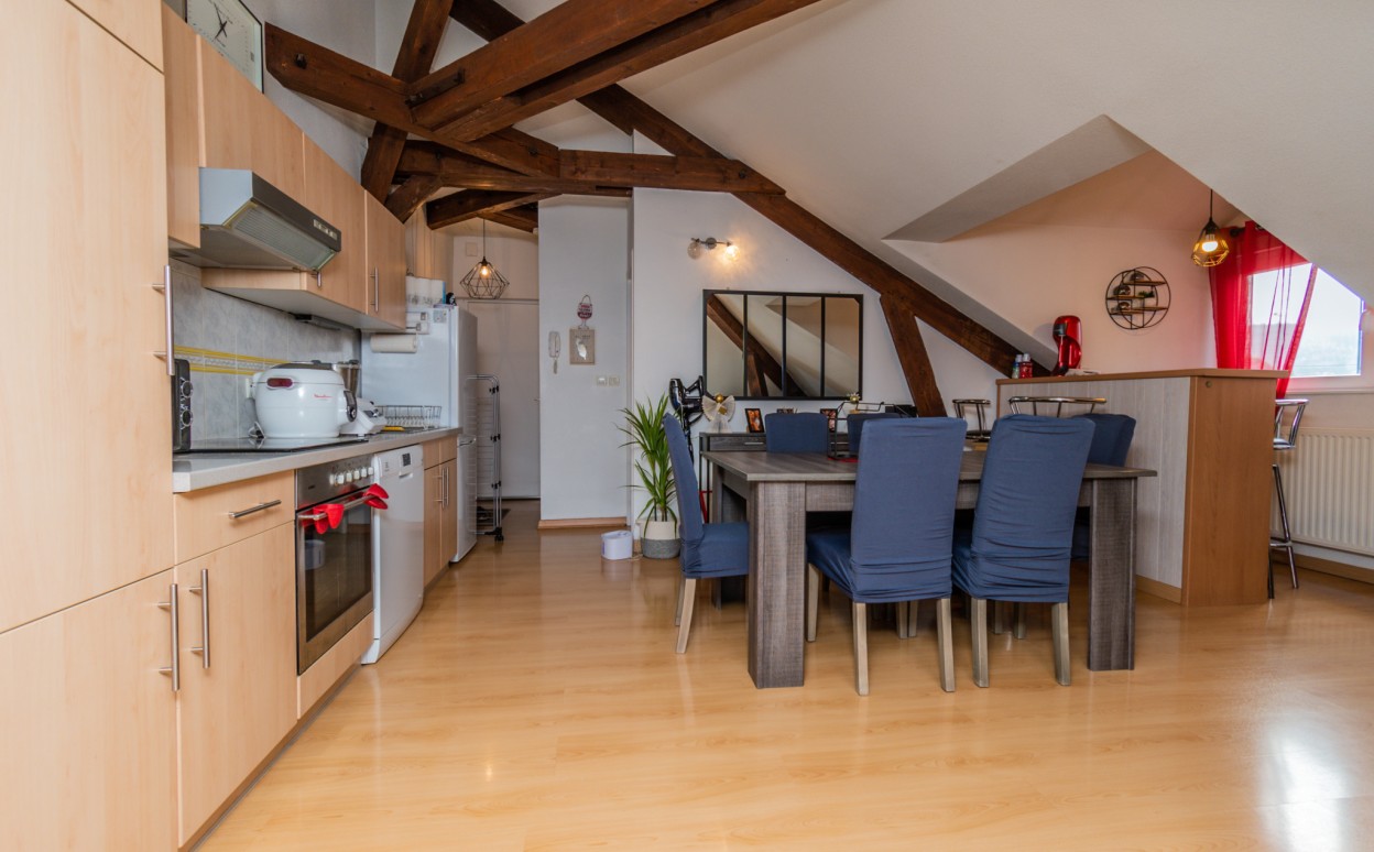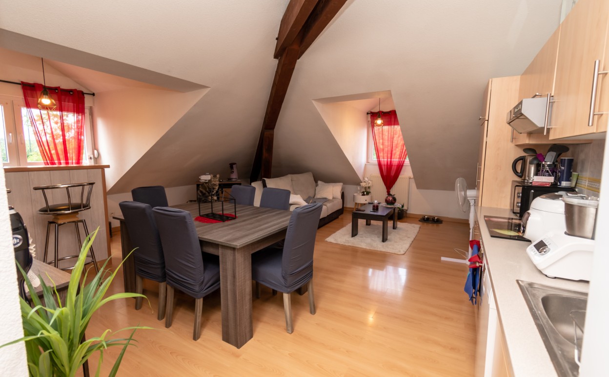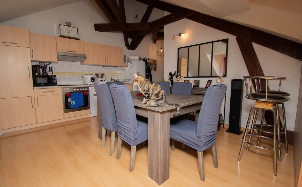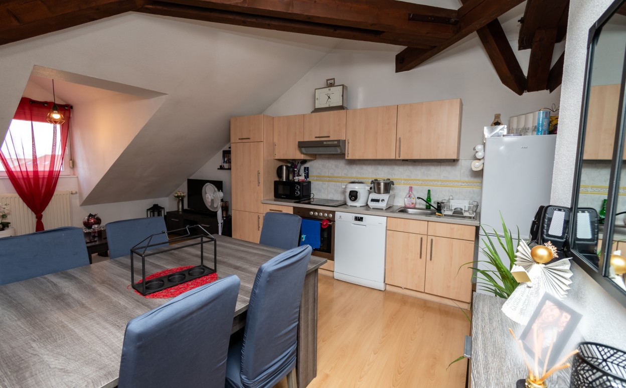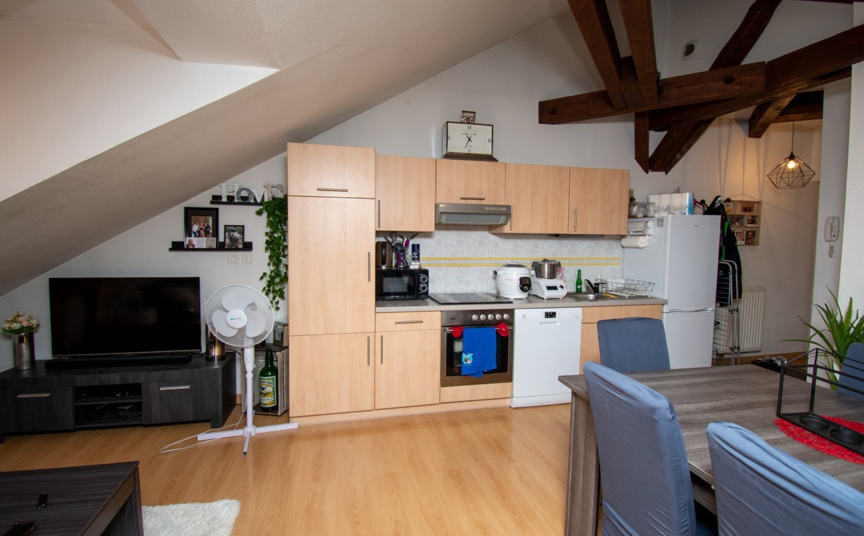 PONTARLIER - T1 BIS~SECTEUR CALME- Appartement de type 1bis, proche centre ville. Ce logement comprend une entrée, une cuisine équipée ouverte sur séjour, une chambre, une salle de bains avec wc ainsi qu'une cave.