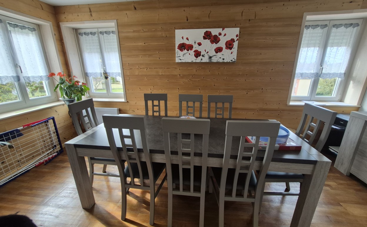 Appartement de type 3 comprenant une entrée, une cuisine équipée ouverte sur séjour, salon, 2 chambres, une salle d'eau avec WC. Cave, garage, place de parking. Balcon sur le pallier. Jardin collectif divisé en deux. Chauffage électrique et pôele à granulés. Disponible à partir du 1er avril.