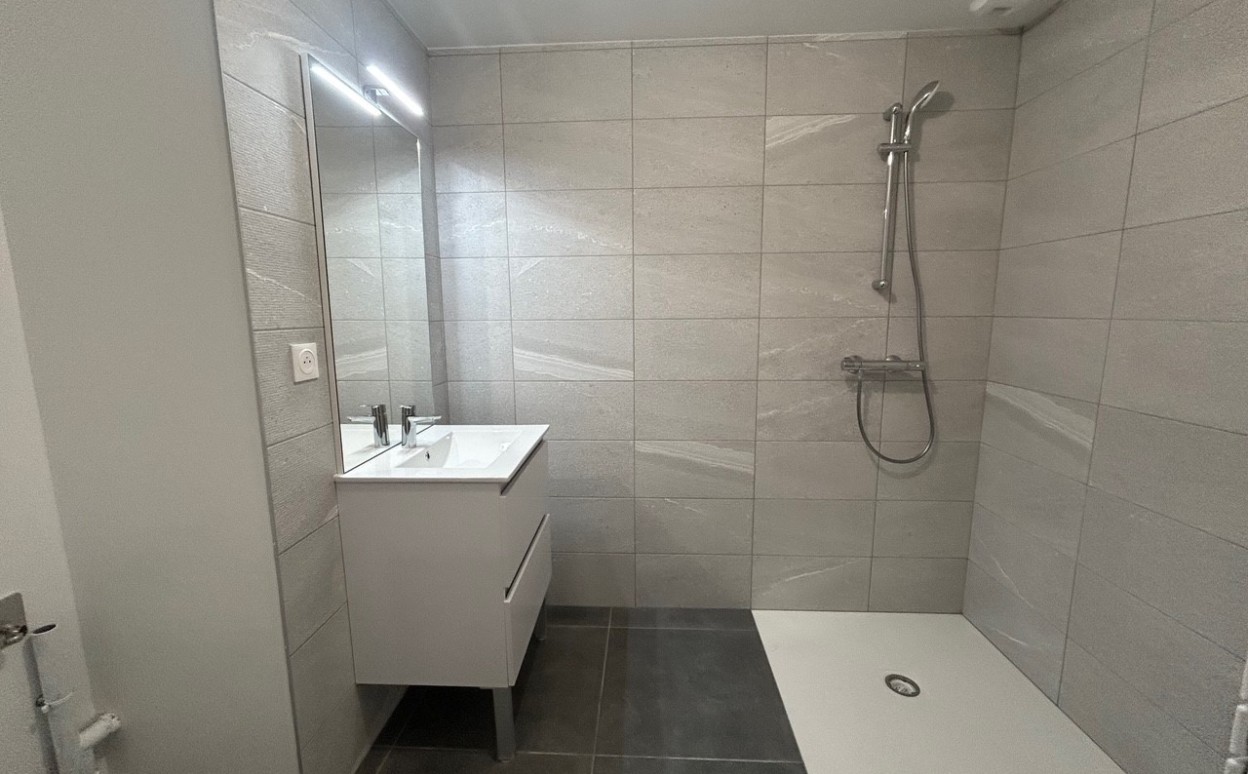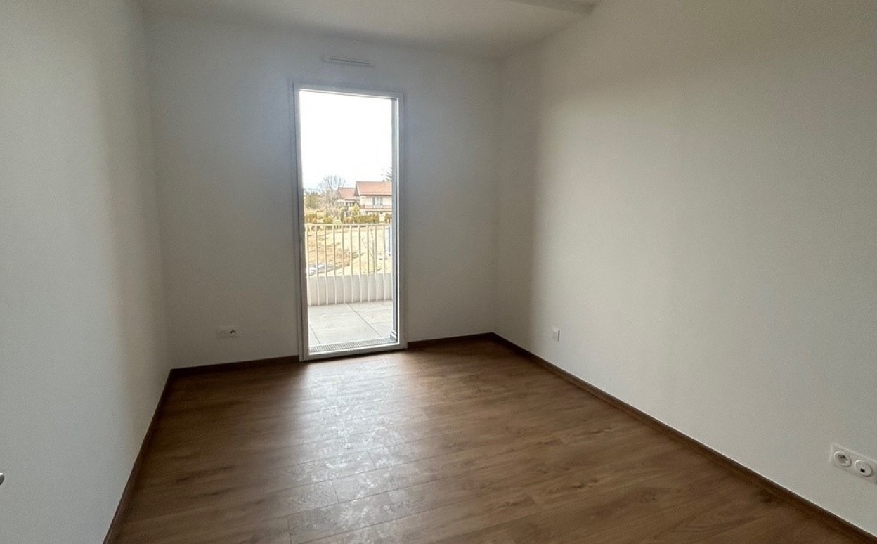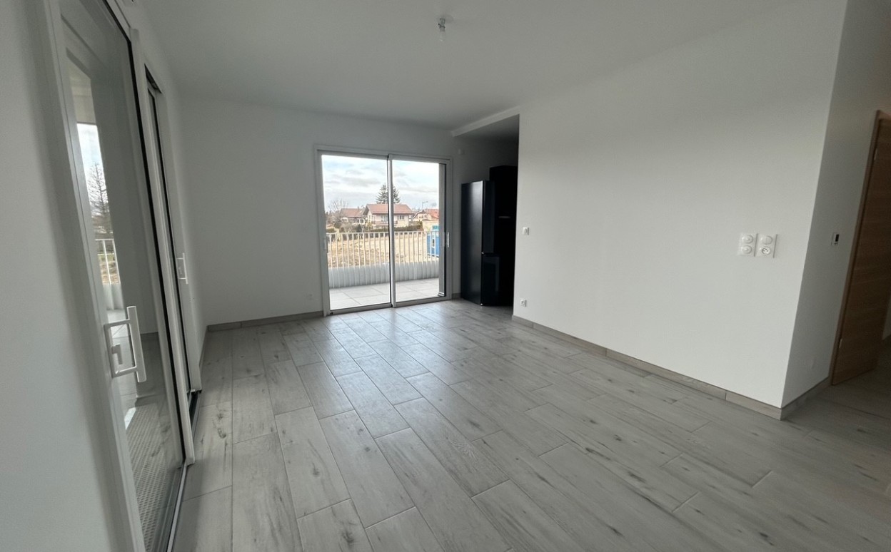 À louer, appartement T3 neuf et lumineux. Il se compose d'une cuisine équipée ouverte sur un séjour donnant accès à une grande terrasse. Il dispose également de deux chambres, d'une salle d'eau et d'un WC séparé. Un garage est inclus.