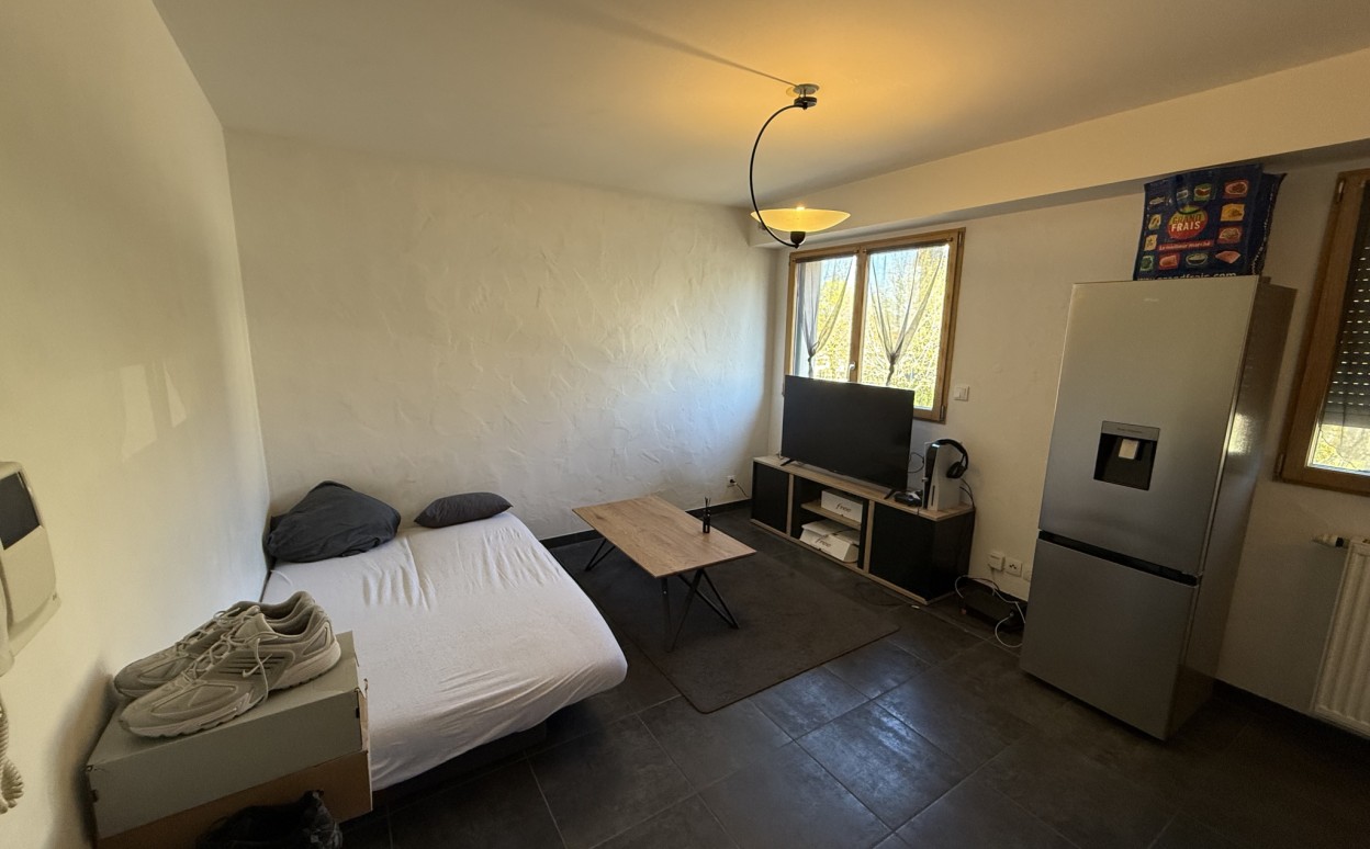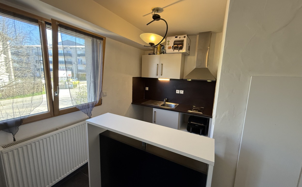 Studio idéalement situé à proximité du centre-ville, comprenant une entrée, une cuisine ouverte sur le séjour, ainsi qu'une salle de bains avec WC.