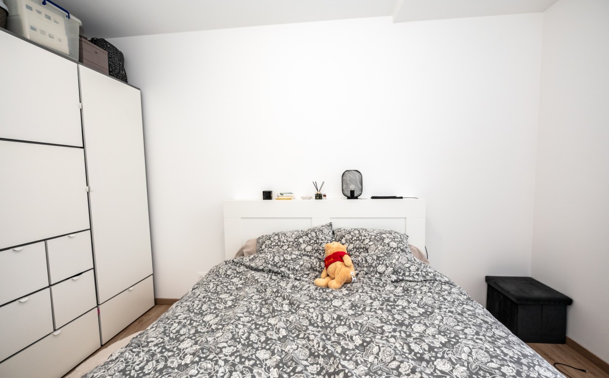 Stationnement en sous-sol avec rampe d'accès chauffante. Normes PMR et ascenseur.