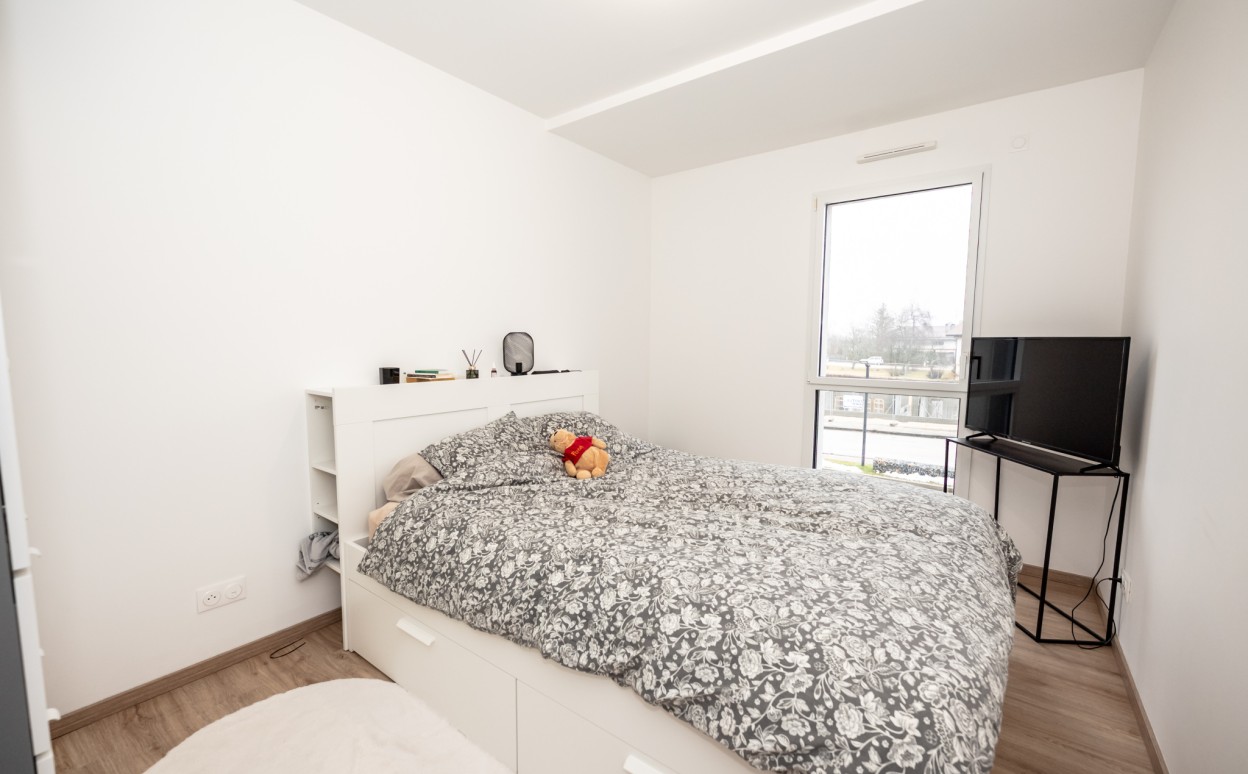 Appartement dans une résidence de haut standing comprenant : un séjour/cuisine avec accès à la terrasse, deux chambres, une salle d'eau et des WC séparés.