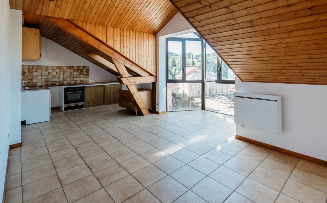 Appartement T3 en duplex de 57,96m2 composé d'une cuisine ouverte sur séjour avec 2 chambres, une salle de bain, un WC.