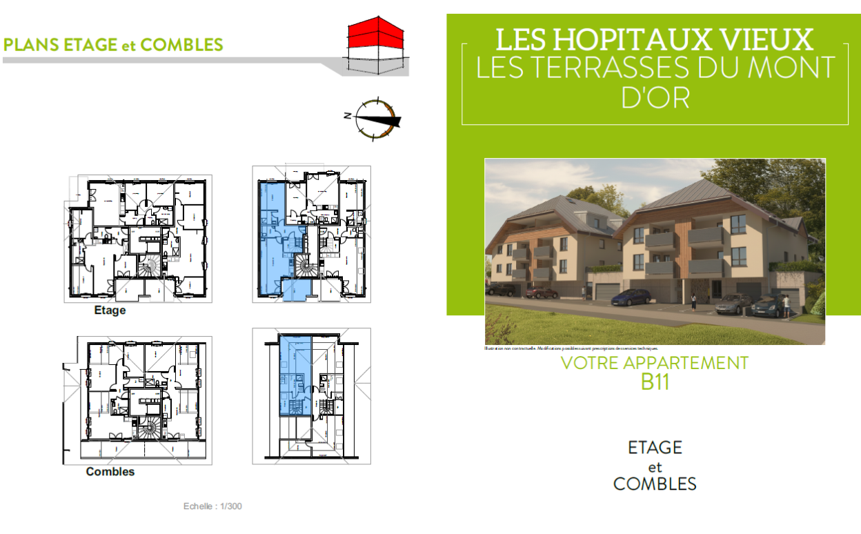 LES HOPITAUX VIEUX : Les Terrasses du Mont d'Or, appartement de type 5 neuf en duplex de 86.77 m2 comprenant un bel espace de vie , deux chambres, une mezzanine, deux salle d'eau et deux WC et une terrasse.