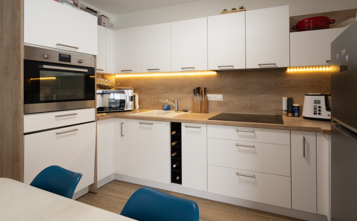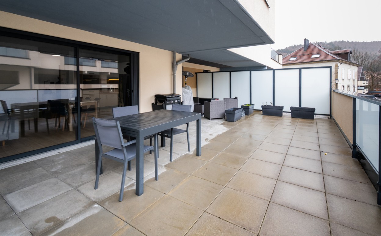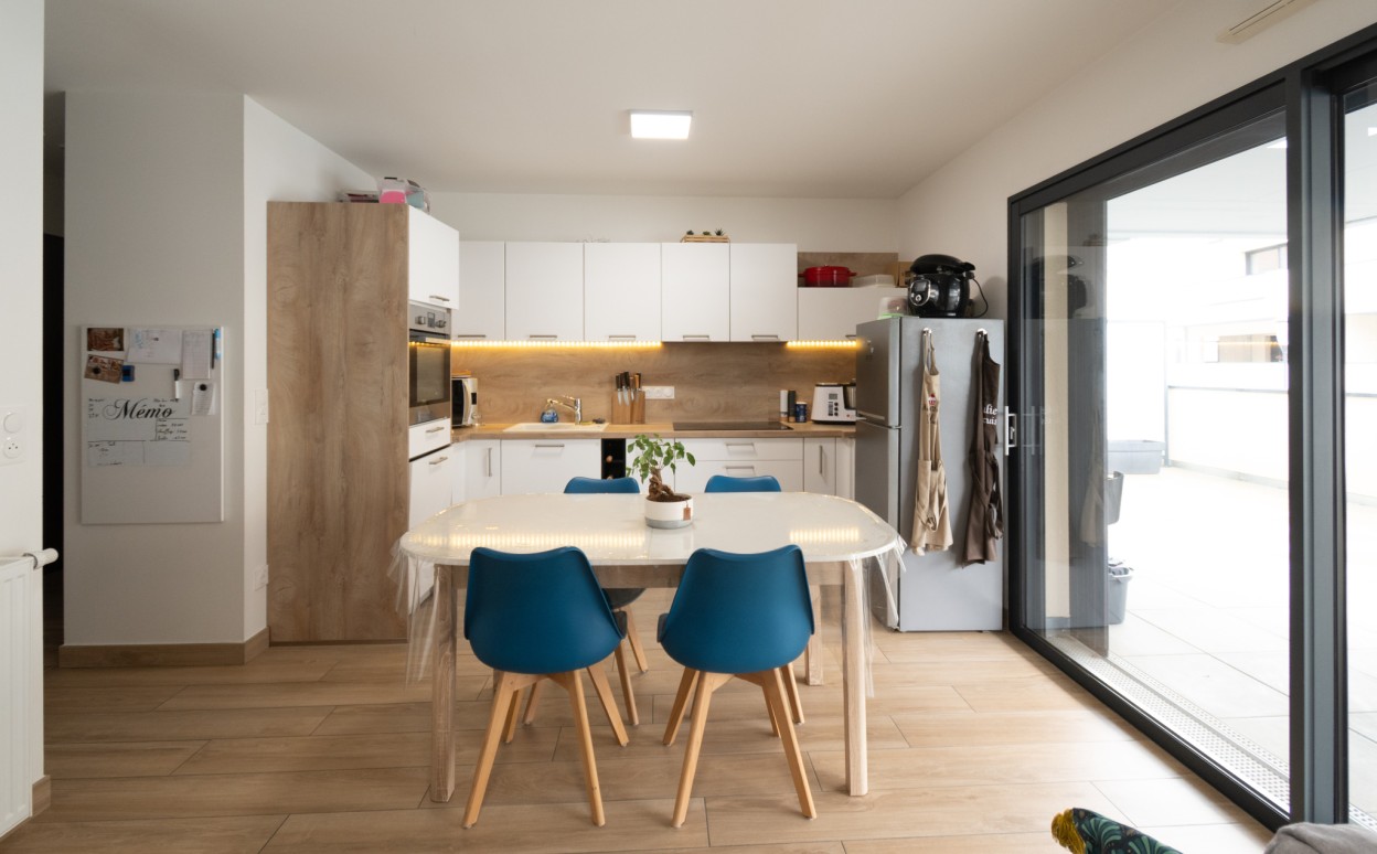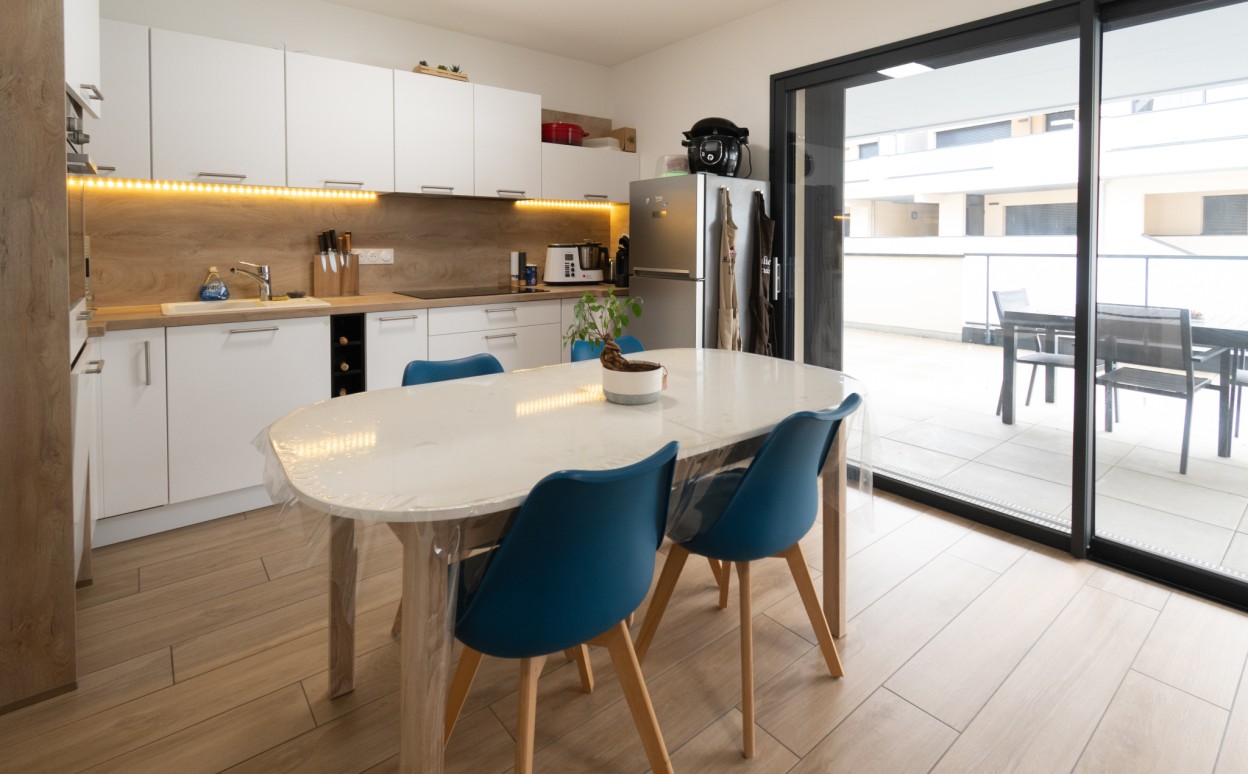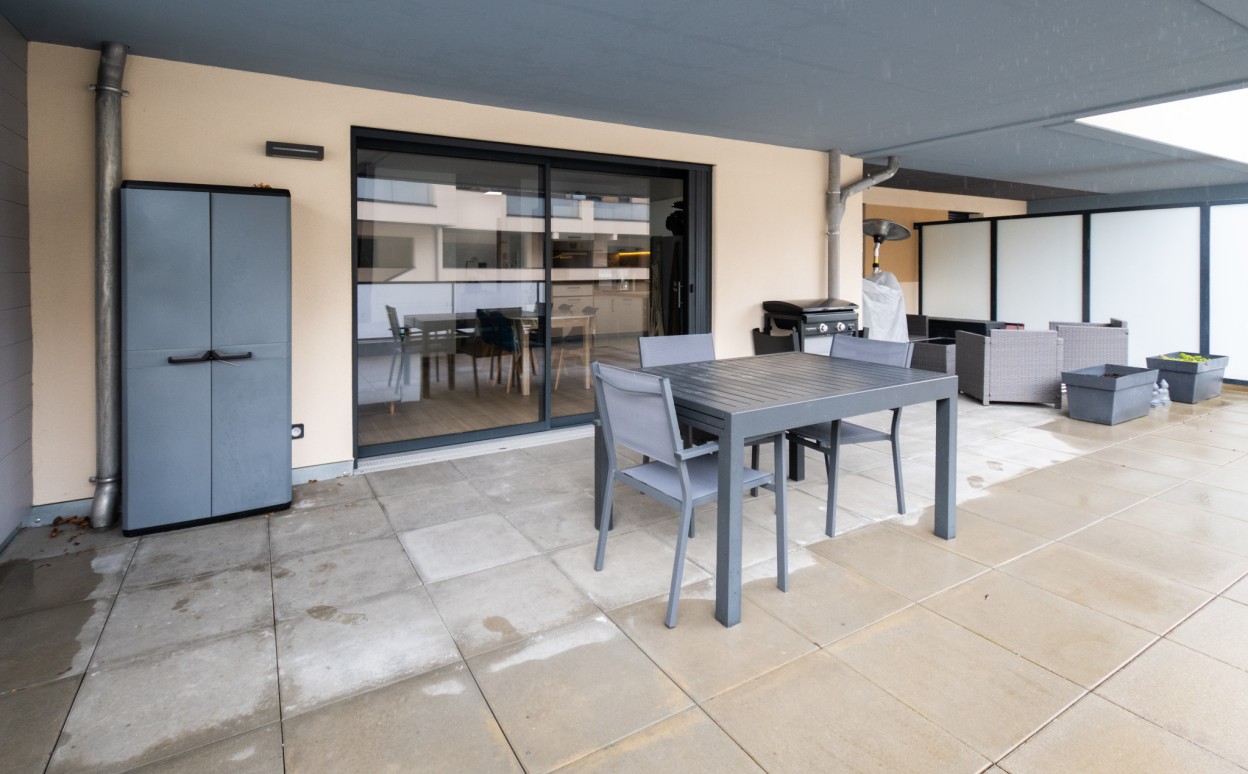 Il se compose d'une cuisine ouverte sur séjour, une chambre, une salle d'eau, WC, cave, garage et une terrasse de plus de 30 m2.