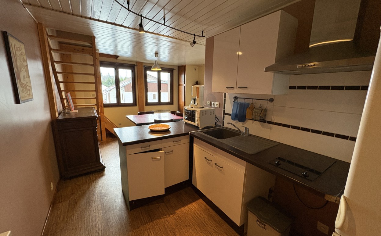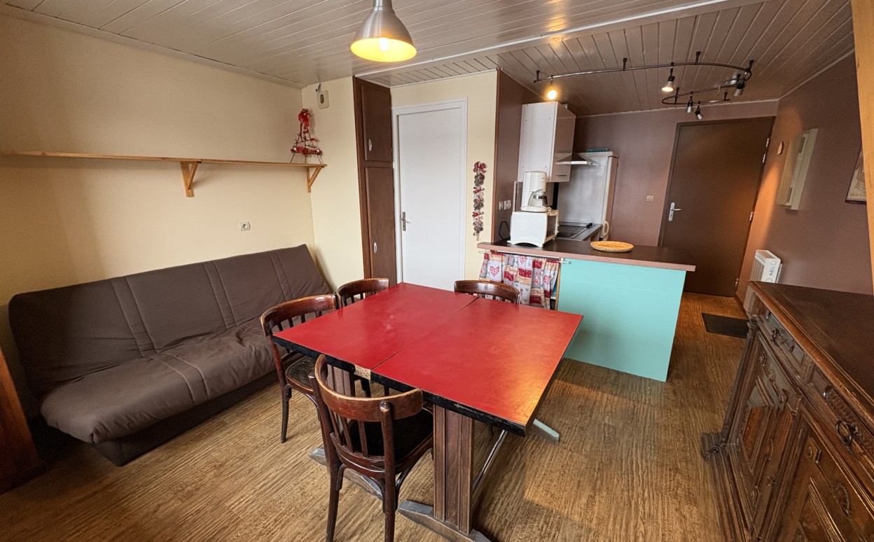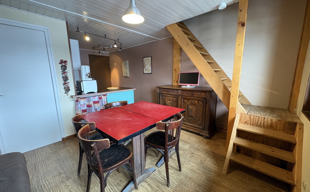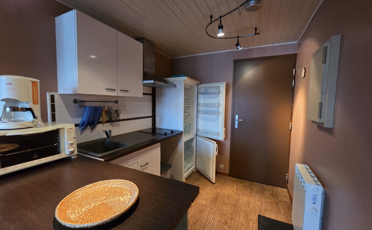 Appartement de type 1 comprenant une cuisine équipée ouverte sur séjour, une mezzanine pouvant accueillir plusieurs couchages, une salle d'eau, un cellier et un garage.