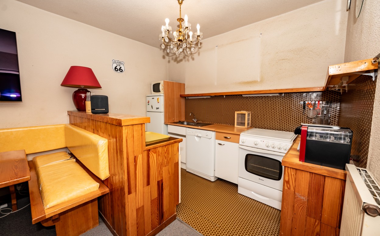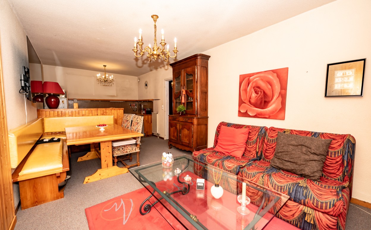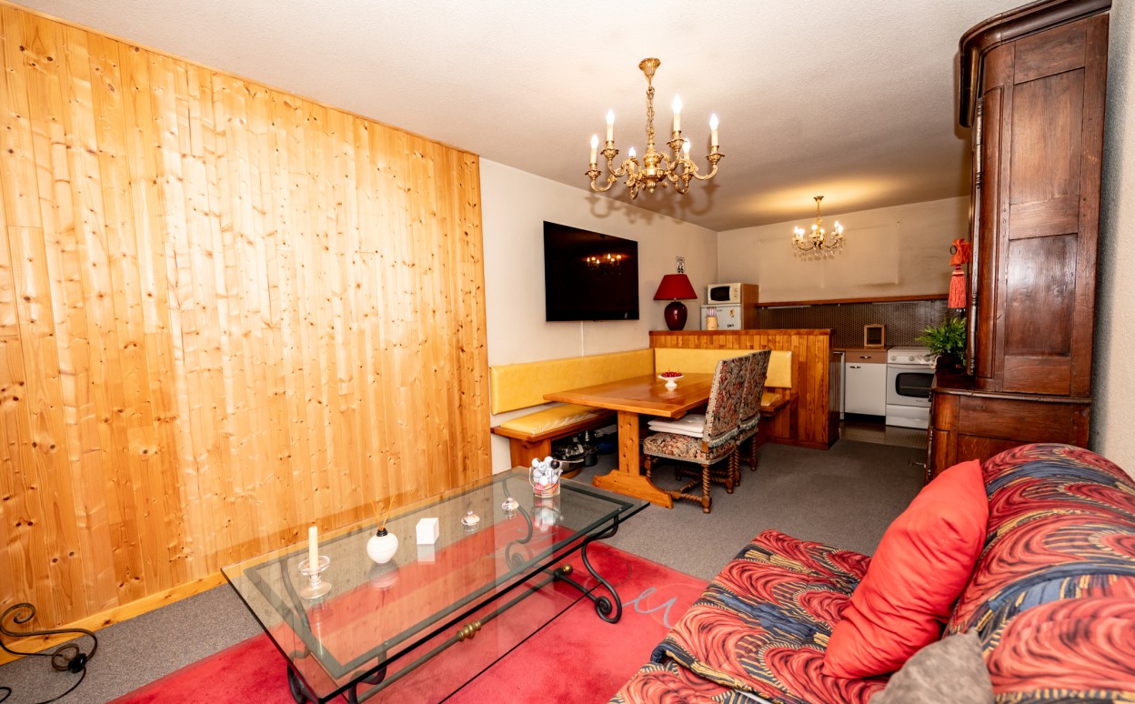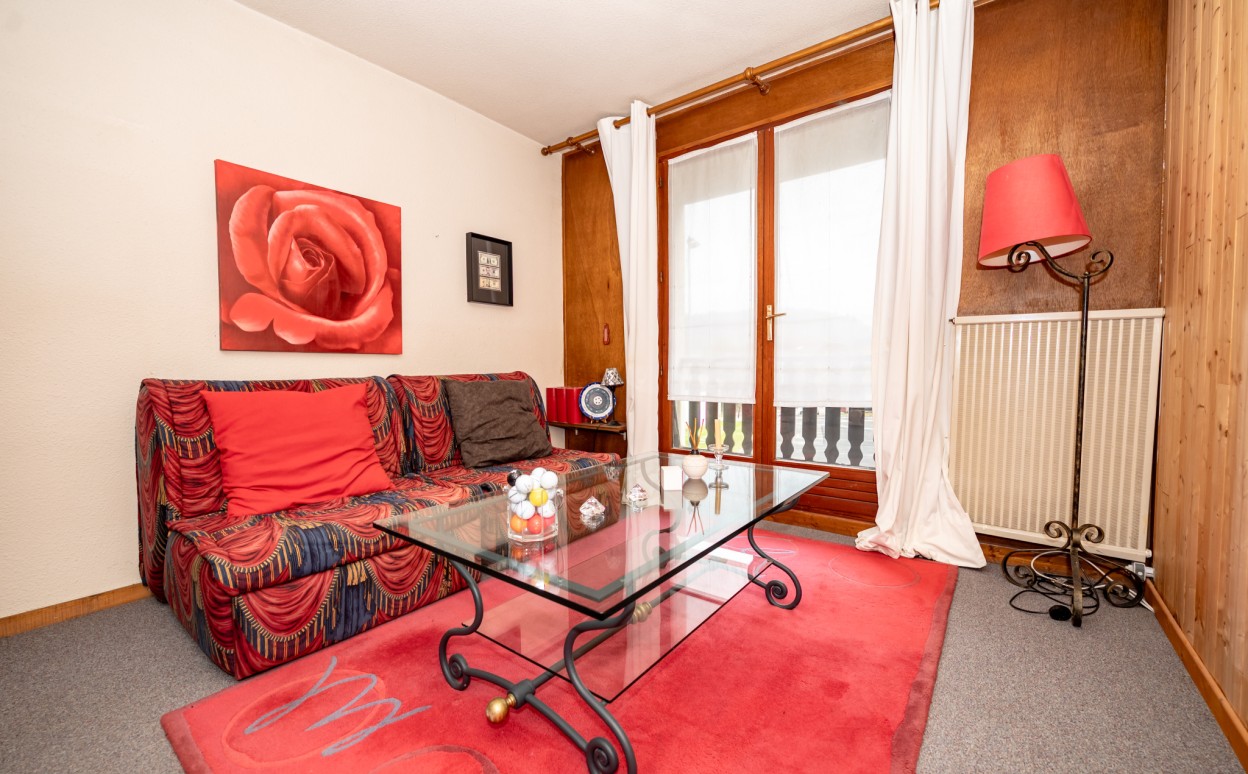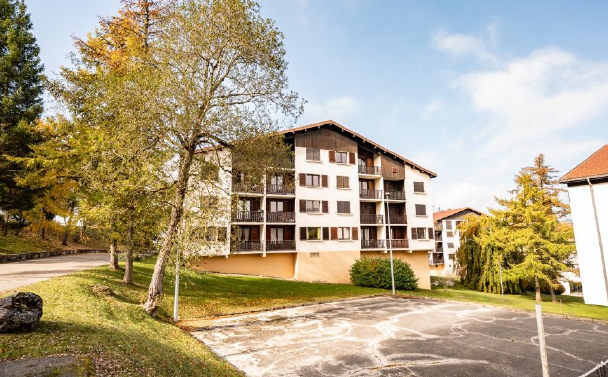 Appartement dans résidence centre village Métabief type 2. Belle espace de vie, grande chambre, salle de bains, WC, cellier, cave et balcon composent ce bien très bien situé dans une copropriété de qualité avec piscine couverte.