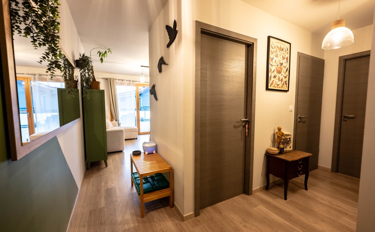 Il se compose d'une cuisine ouverte sur salon donnant un accès direct à la terrasse, deux chambres, un cellier, une salle de bains, et un wc indépendant.