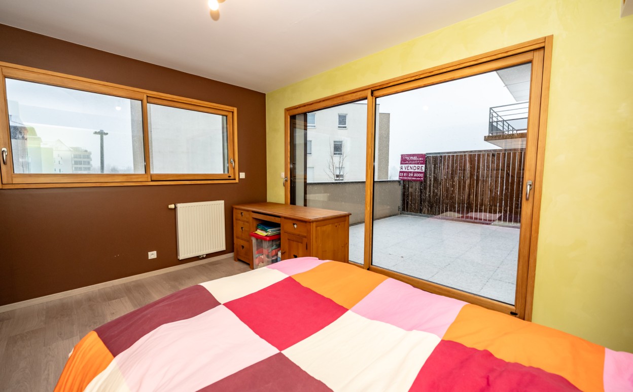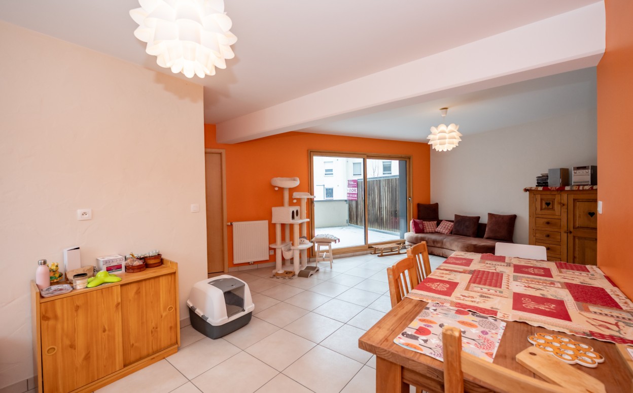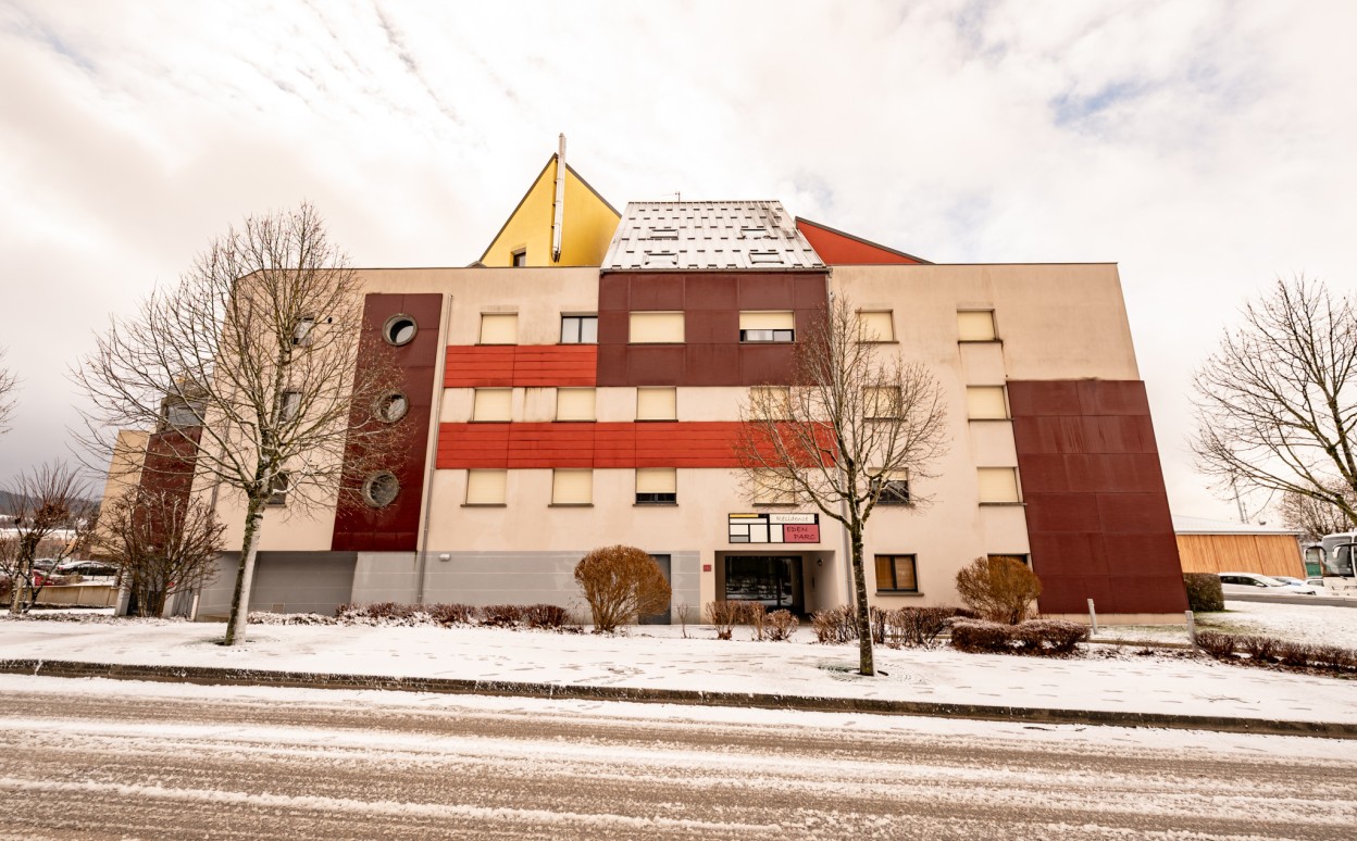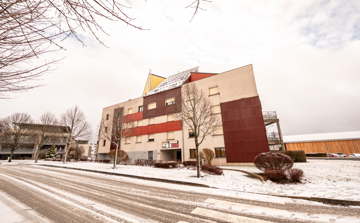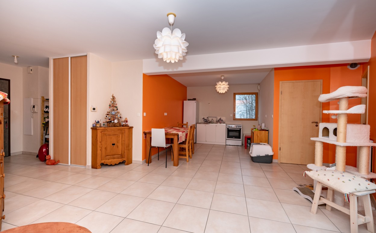 PONTARLIER - LES EPINETTES : Résidence EDEN PARC, appartement haut standing de type 2 dans une petite copropriété calme de 2009 avec ascenseur comprenant entrée avec placard, cuisine ouverte sur séjour avec accès terrasse de 17m2, chambre, salle d'eau - WC, cave et parking privé en sous-sol. Chauffage collectif avec PREVAL, VMC doube flux, DPE en C.