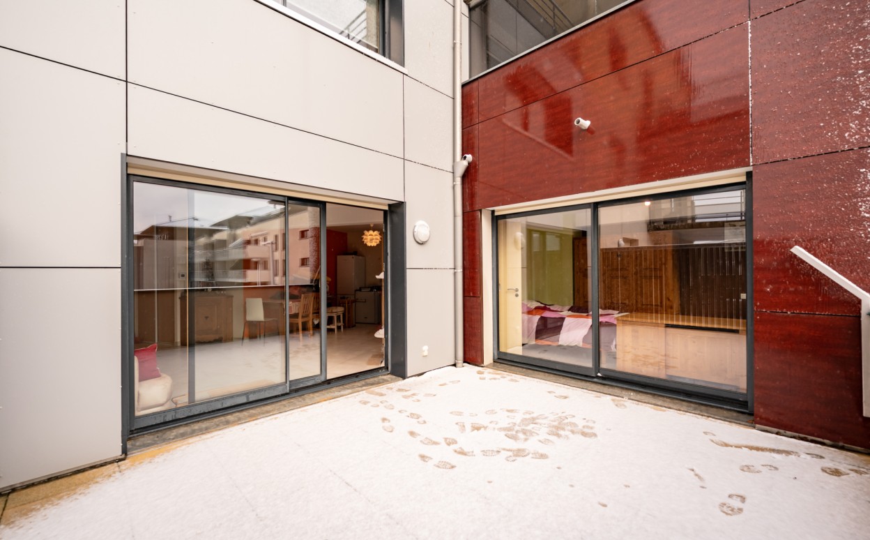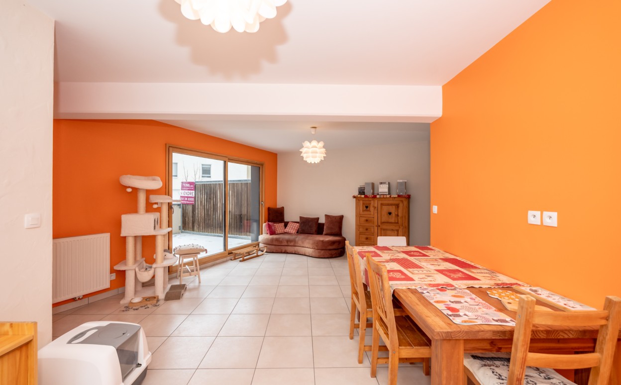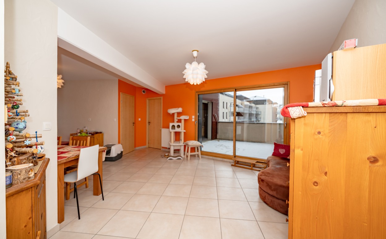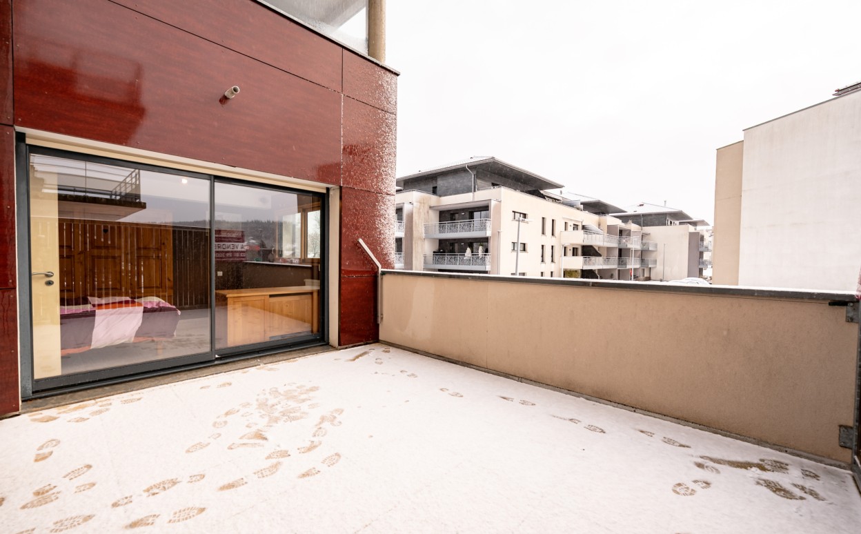 PONTARLIER - LES EPINETTES : Résidence EDEN PARC, appartement haut standing de type 2 dans une petite copropriété calme de 2009 avec ascenseur comprenant entrée avec placard, cuisine ouverte sur séjour avec accès terrasse de 17m2, chambre, salle d'eau - WC, cave et parking privé en sous-sol. Chauffage collectif avec PREVAL, VMC doube flux, DPE en C.