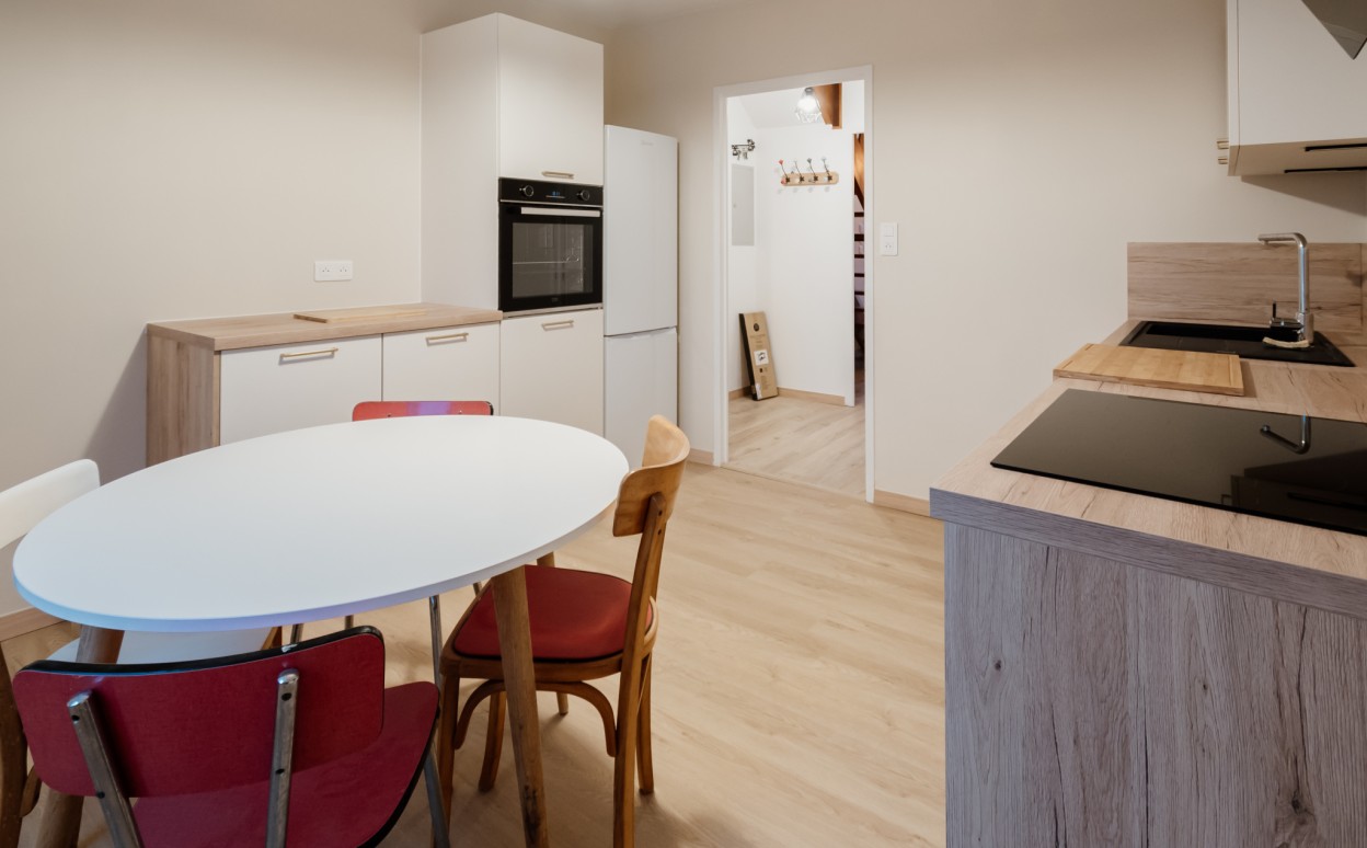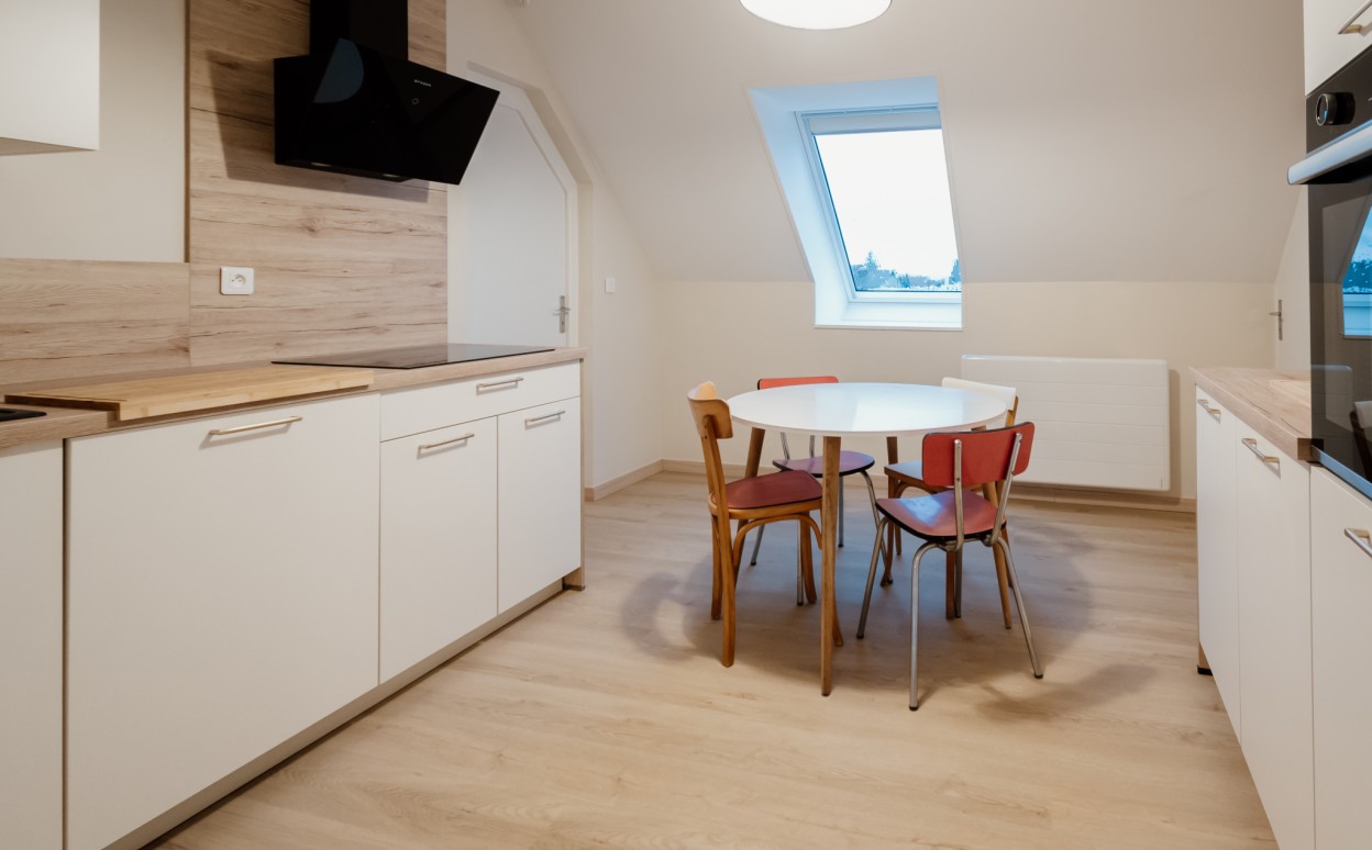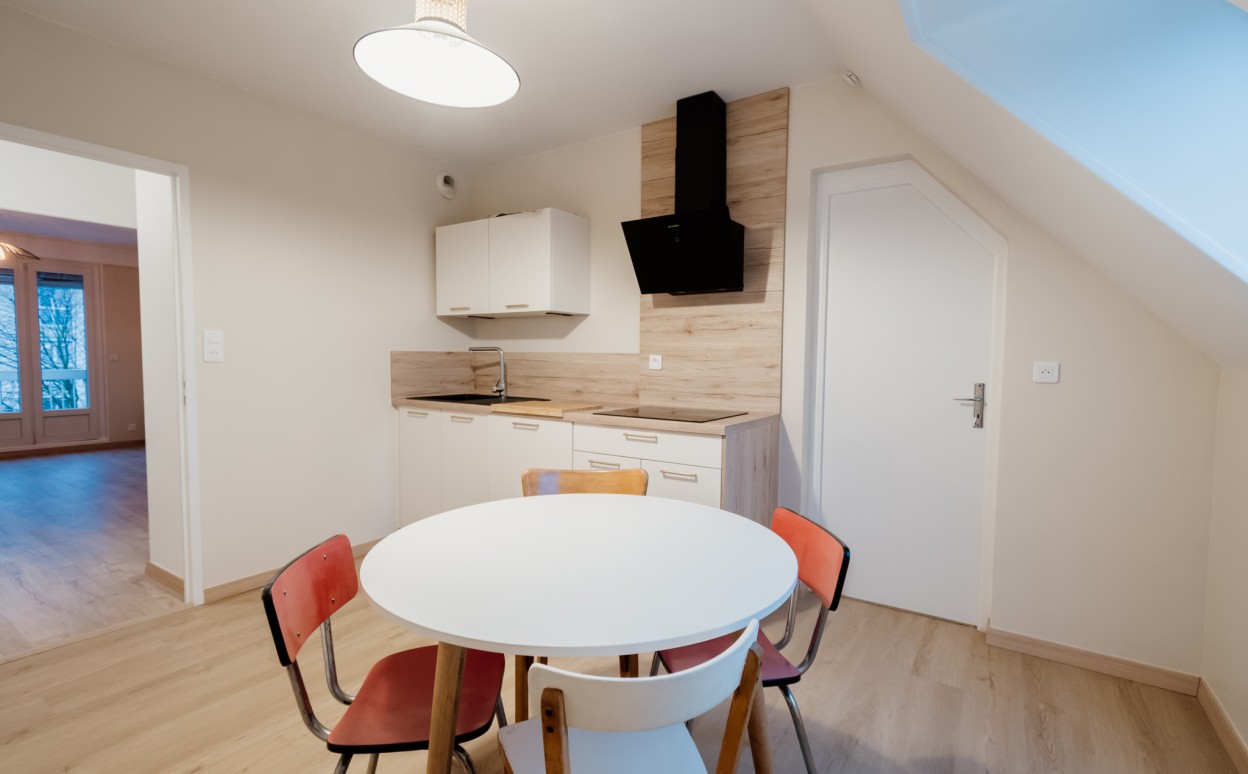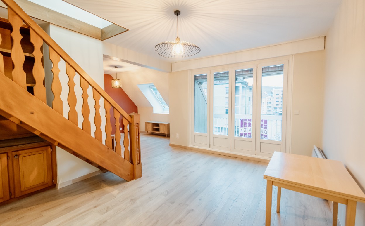 PONTARLIER - BOULEVARD PASTEUR : Appartement de type 4 en duplex entièrement rénové en 2025 situé dans une petite copropriété calme au 3ème et dernier étage avec ascenseur comprenant : entrée, cuisine aménagée et équipée, cellier, salon - séjour avec accès terrasse, 2 chambres, bureau, salle d'eau, grenier, cave et garage. Prestations de qualité, DPE en D.