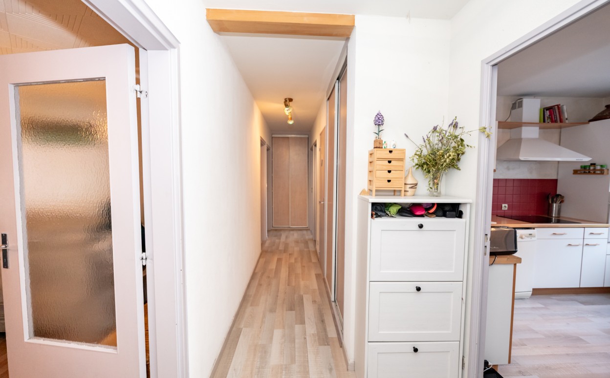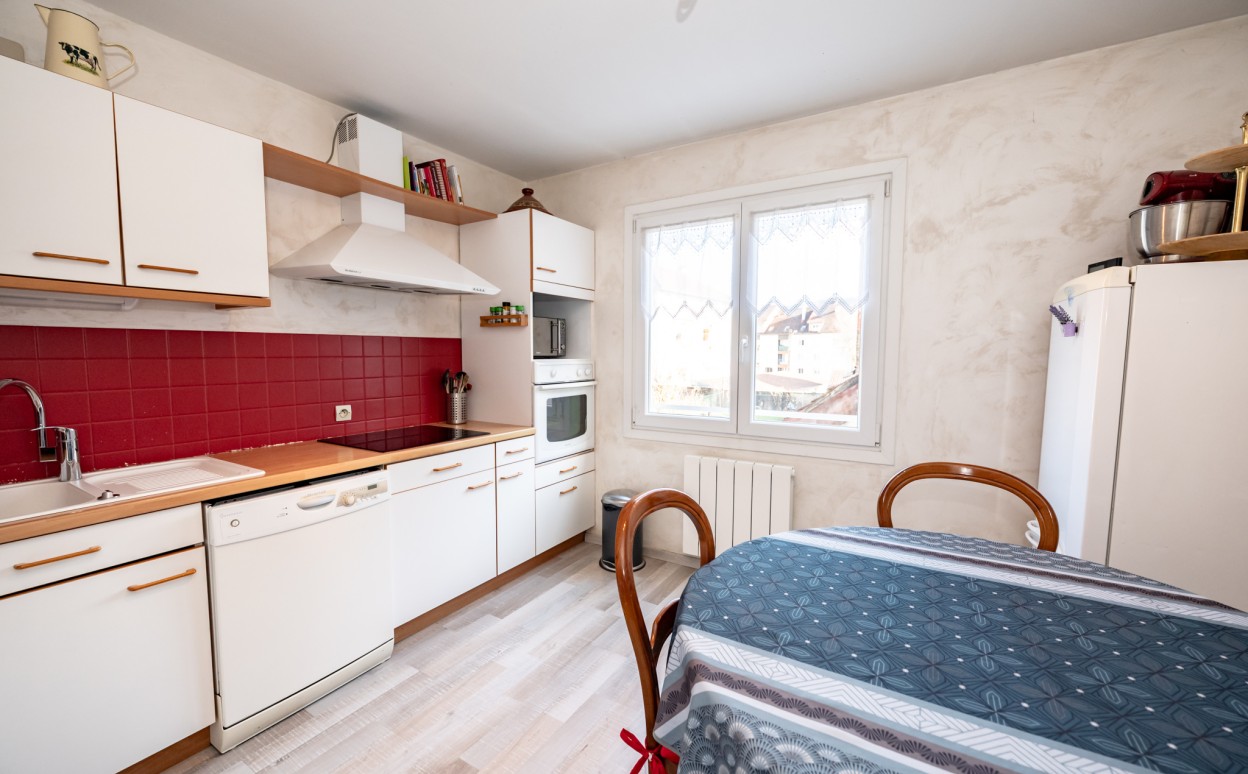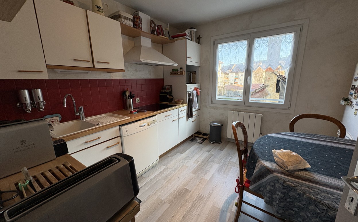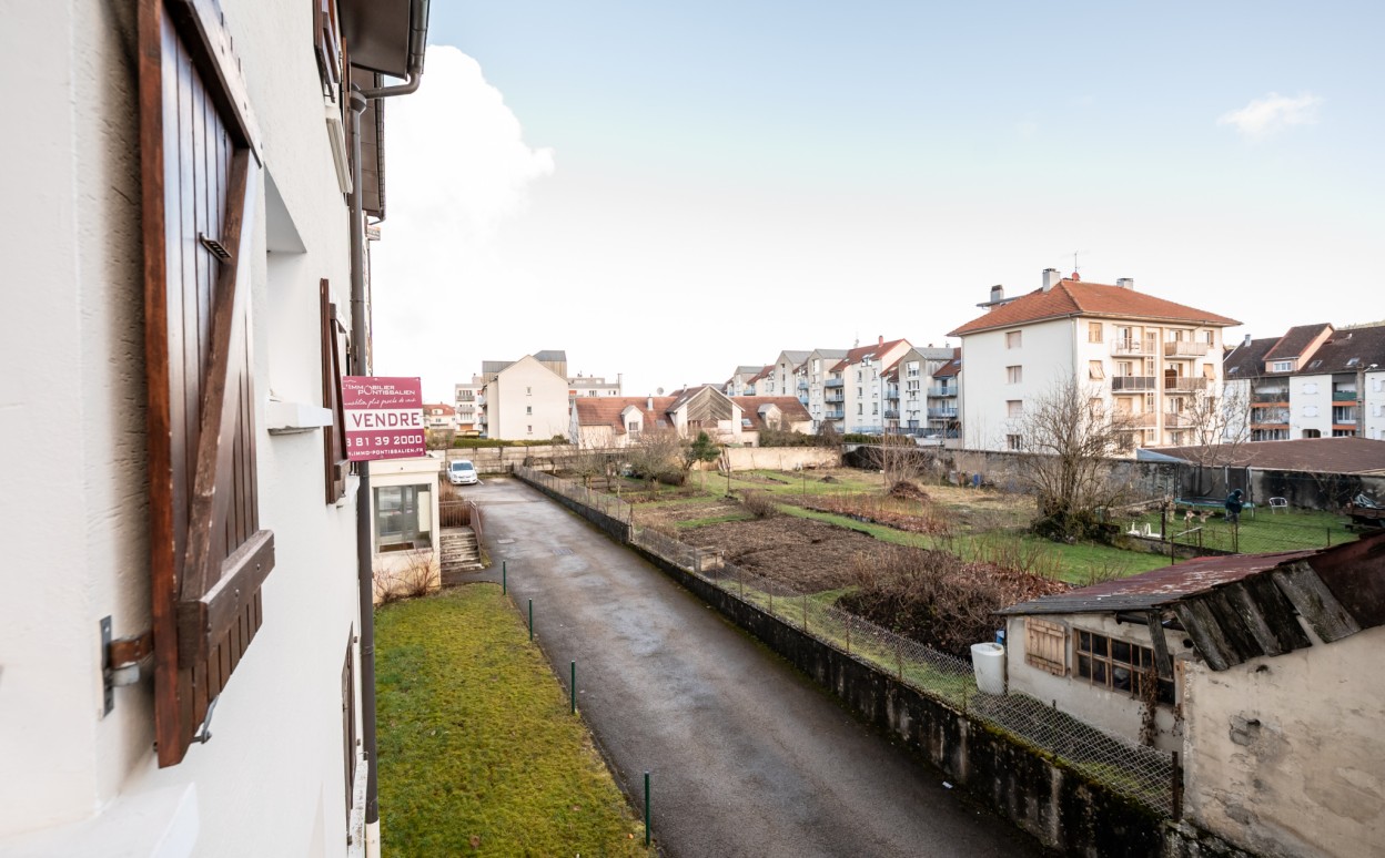 PONTARLIER Plein centre-ville, appartement T4 lumineux avec ascenseur, idéalement situé en coeur de ville, dans un environnement calme en arrière-cour. Il se compose d'une entrée, d'une cuisine équipée, d'un spacieux salon-séjour ouvrant sur une agréable terrasse, de 3 chambres, d'une salle de bain et un wc. Ce bien, en bon état général, dispose également d'une cave et d'un garage, des atouts appréciables en centre-ville. Les plus : Situation privilégiée, très lumineux, ascenseur, terrasse, cave et garage, environnement calme