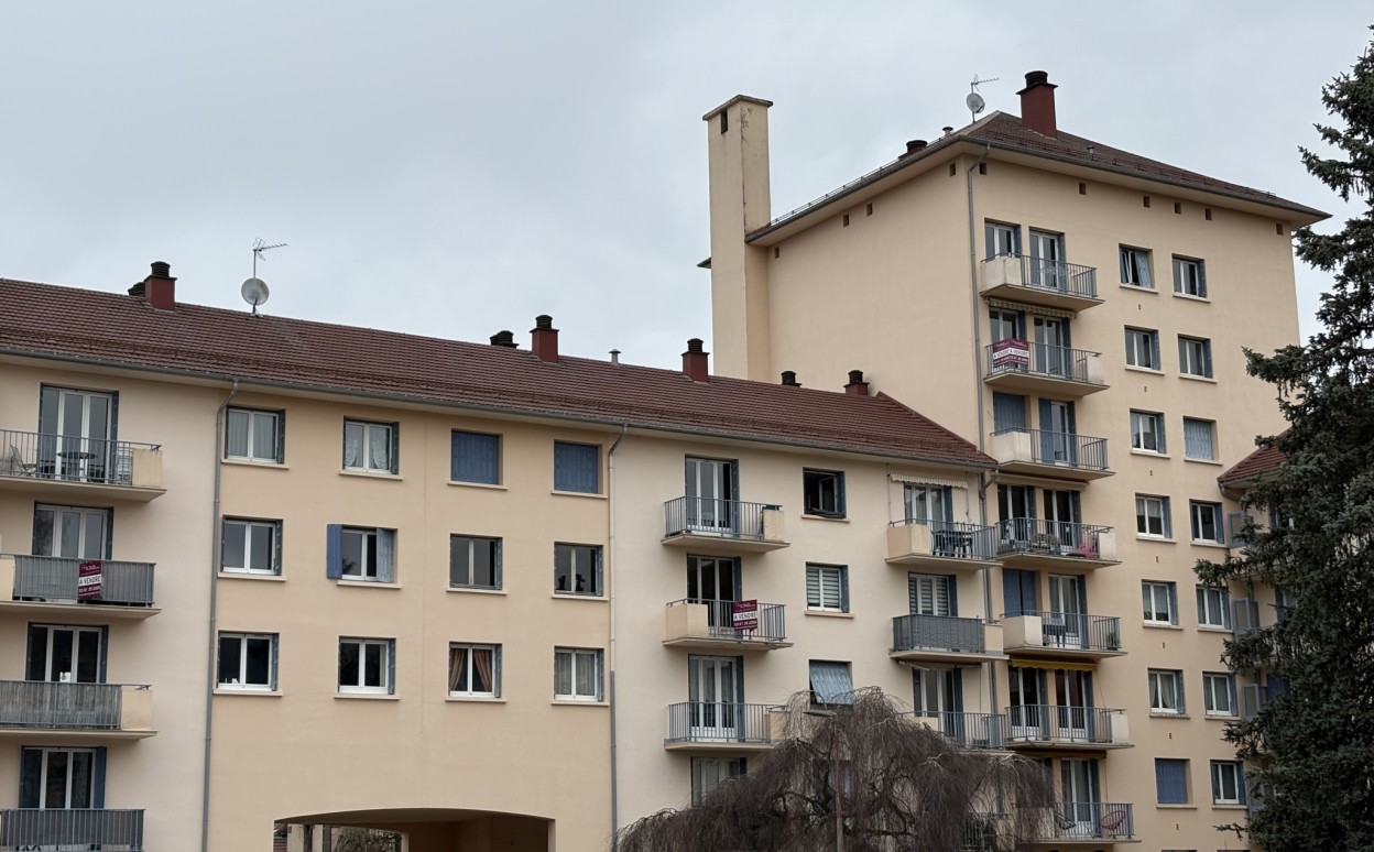PONTARLIER - Résidence le CHAMP DU RHIN : Appartement lumineux de type 4 à rénover comprenant entrée, cuisine, cellier, salon - séjour avec accès balcon, 2 chambres, salle de bains, WC, cave et garage. Copropriété calme avec un parc commun.