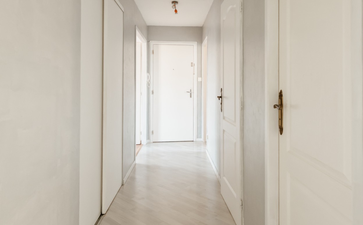 Appartement lumineux de type 4 comprenant entrée, cuisine, cellier, salon - séjour avec accès balcon, 2 chambres, salle d'eau, WC, cave et garage. Copropriété calme avec un parc commun.