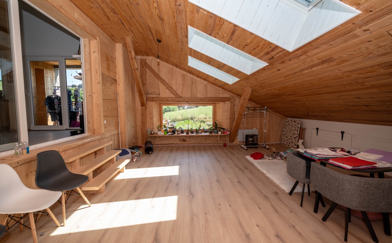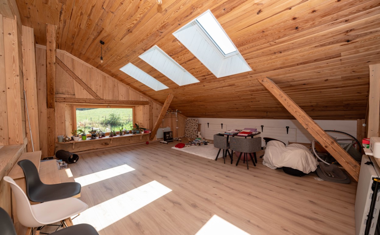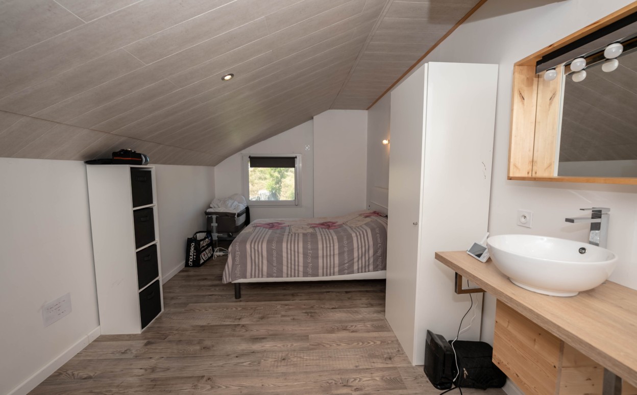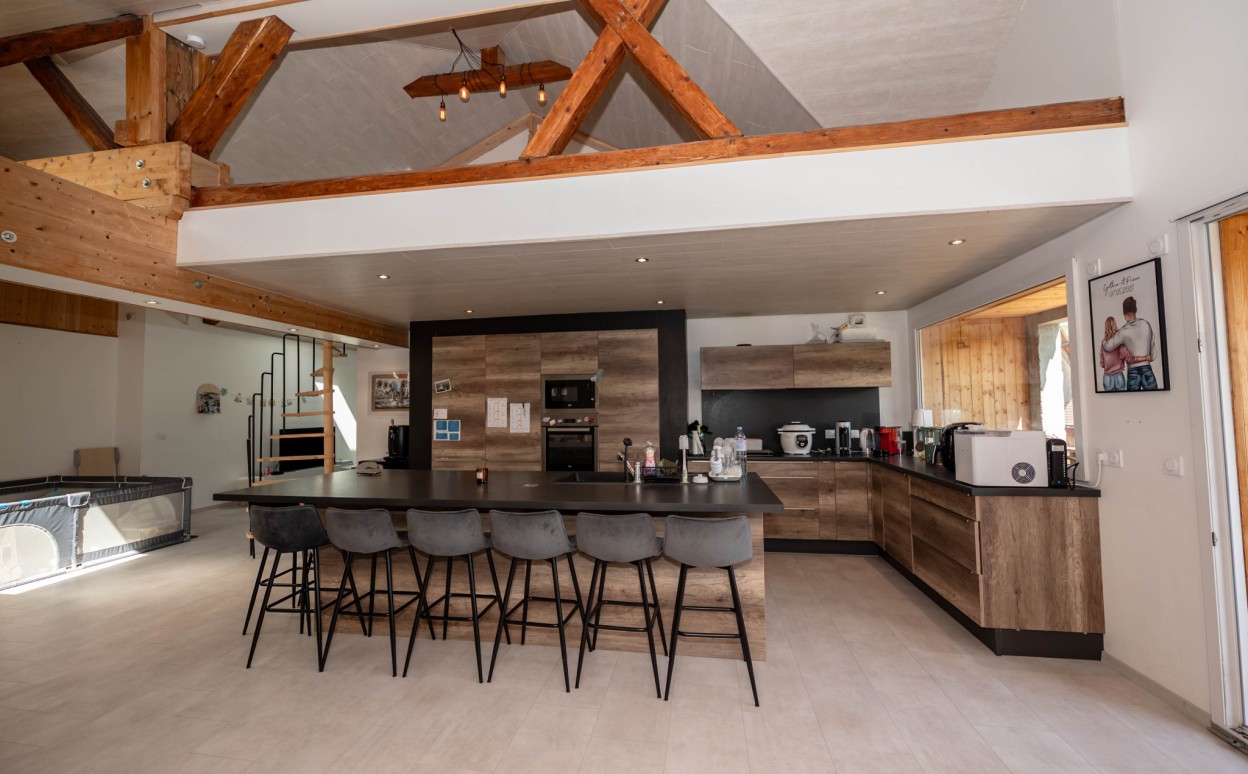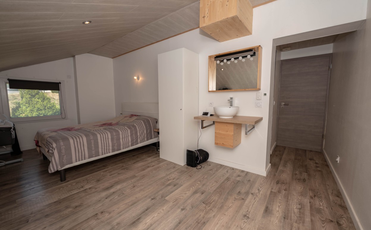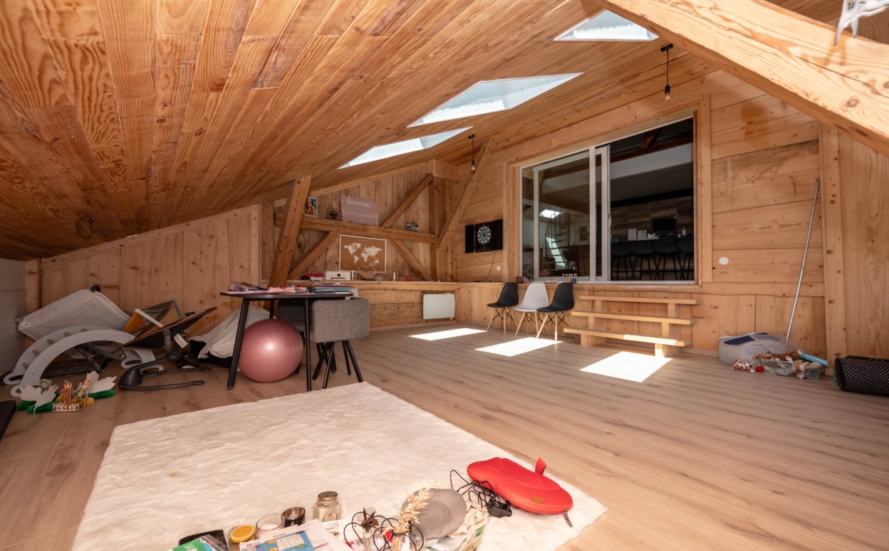 Il est composé d'une cuisine équipée ouverte sur séjour - salon, pièce très lumineuse offrant une hauteur sous plafond importante, accès balcon avec une très belle vue, mezzanine, une suite parentale avec salle d' eau, 2 chambres avec mezzanine, une salle de bain, wc, cellier, une petite salle de sport, une salle de loisirs, buanderie, 2 places de parking privatives (avec possibilité de construire un garage).