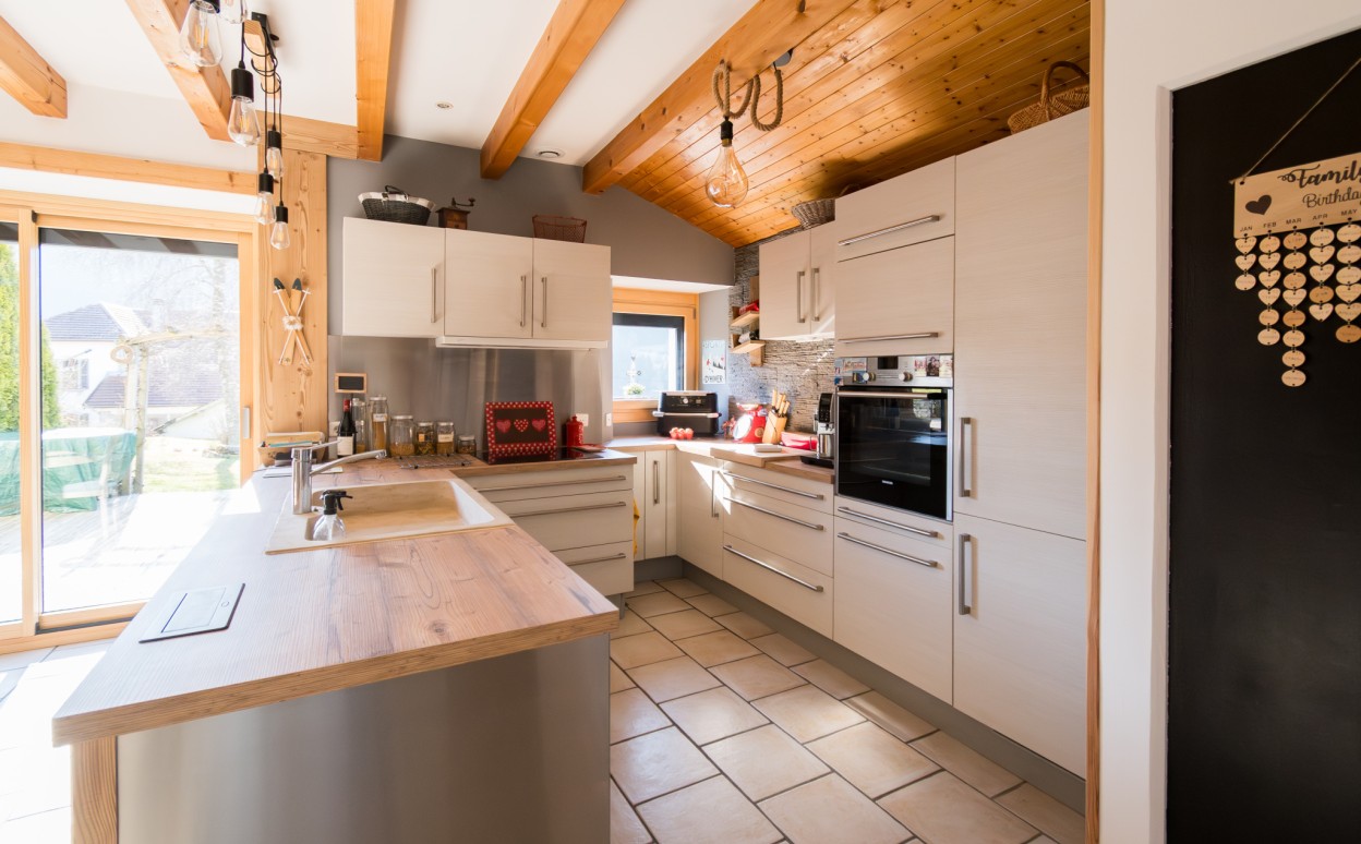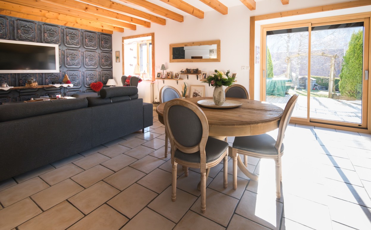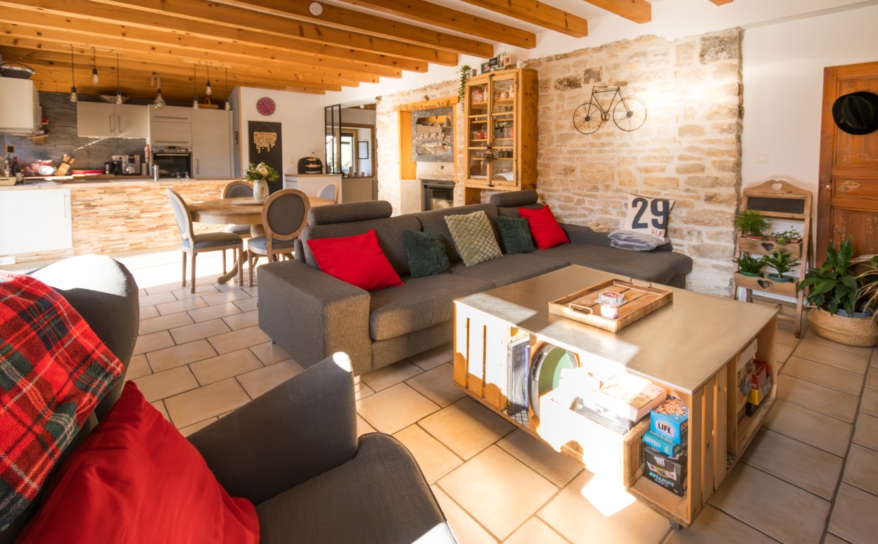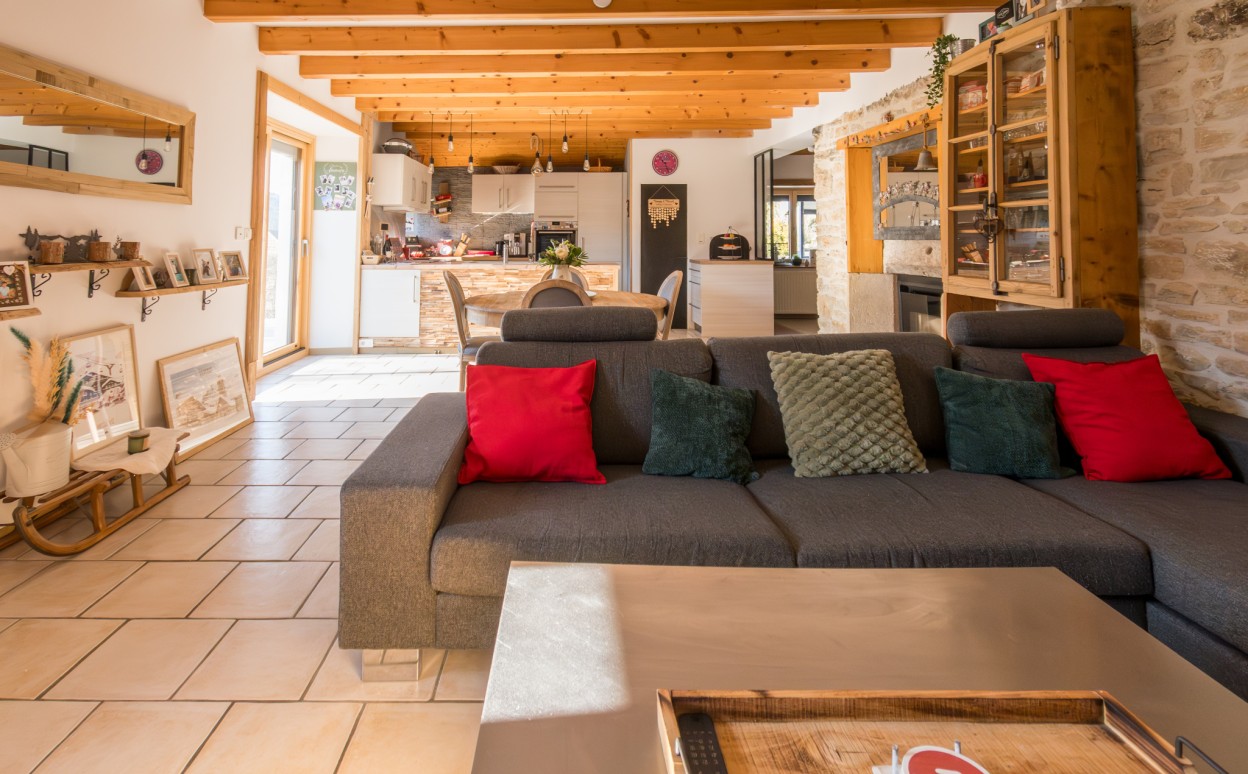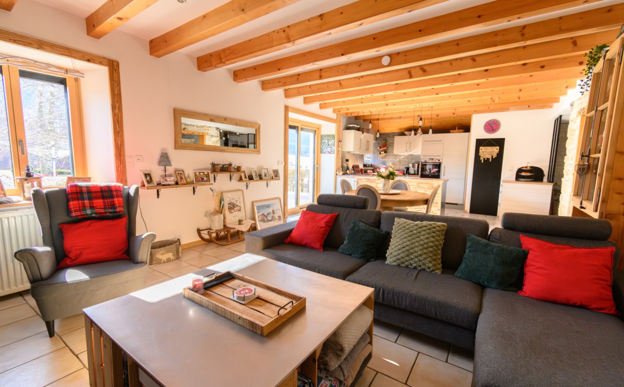 10 Km de PONTARLIER - MAISON DU BOIS - LIEVREMONT : Ancienne ferme de caractère entièrement renovée comprenant au rez-de-chaussée, une entrée, une cuisine aménagée et équipée ouverte sur un vaste séjour avec accès au jardin, un cellier avec accès à une cave, un bureau, une chambre, une salle de bains, un wc, un atelier, un garage double, une chaufferie - buanderie, à l'étage : une mezzanine, 5 chambres et un WC. Sur une parcelle de 829m2.