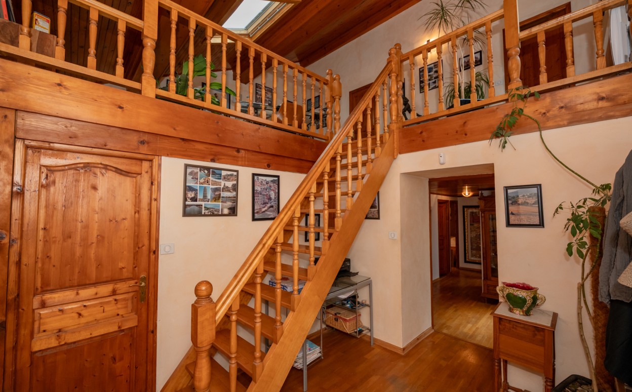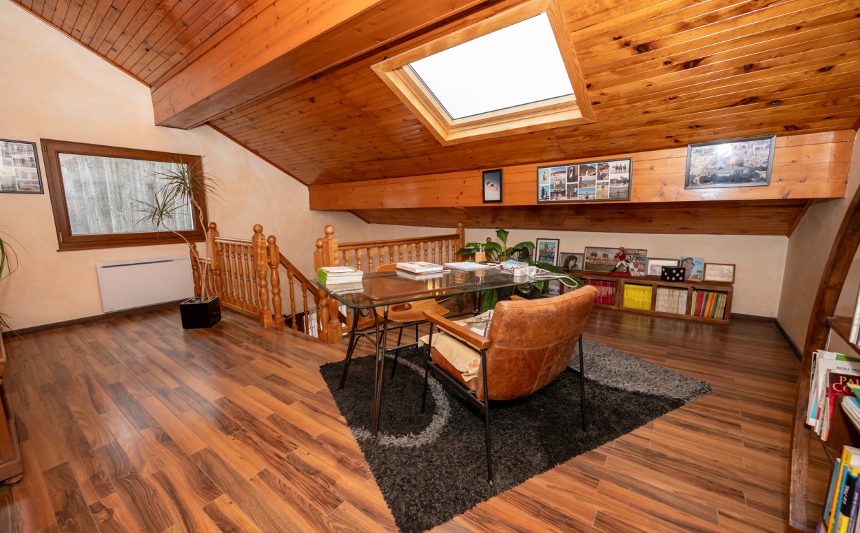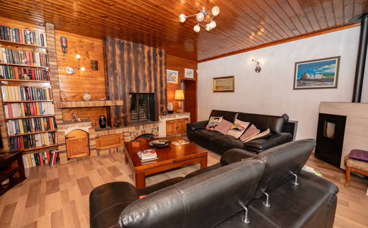 Au rez-de-chaussée, vous trouverez une entrée accueillante ainsi qu'une cheminée double foyer ouverte à la fois sur la cuisine équipée et sur le salon, créant une atmosphère chaleureuse et conviviale. Le premier étage se compose de trois chambres, d'une salle d'eau, d'une salle de bain et d'un grand dégagement. Au deuxième étage, une vaste mezzanine aménagée en bureau, une quatrième chambre ainsi qu'un grenier complètent l'ensemble.La maison dispose également de deux celliers, d'un abri à bois et d'une grande cour.