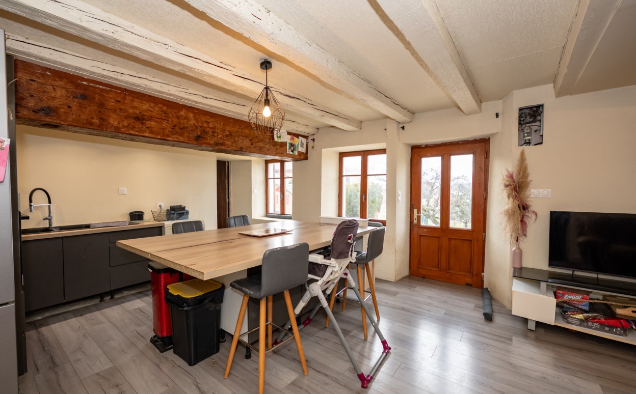A 15 Km de PONTARLIER - VAL D'USIERS -GOUX-LES-USIERS : sur une surface de 8,26 ares, une maison comprenant : entrée sur cuisine ouverte avec séjour , grande chambre avec coin dressing, salle d'eau, wc,très grande grange,cave. A l'étage : espace à aménager. Un jardin attenant de 3.55 ares complète ce bien.