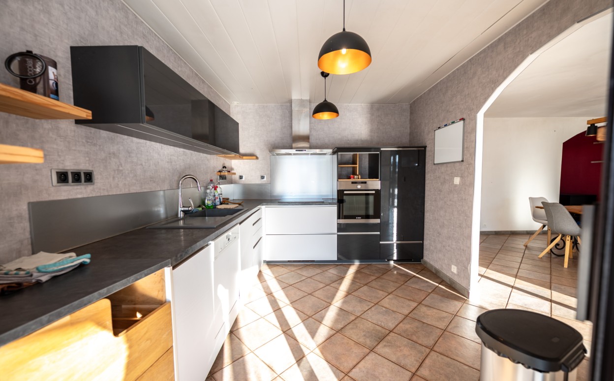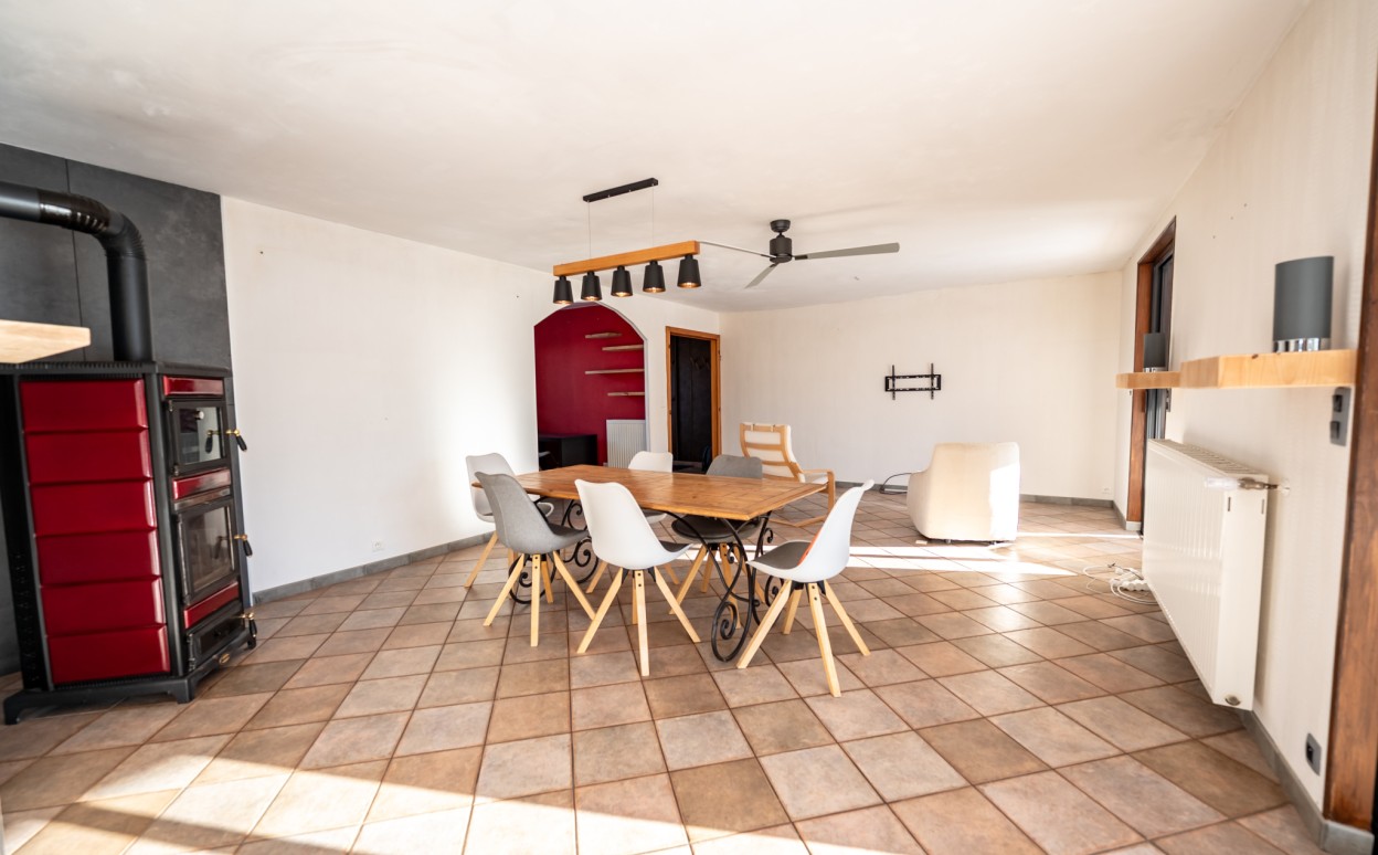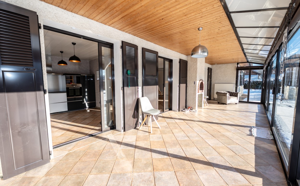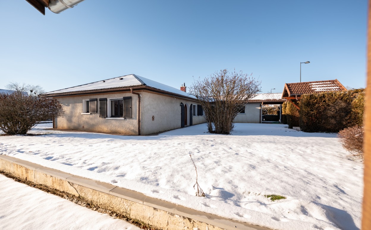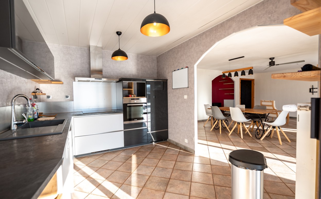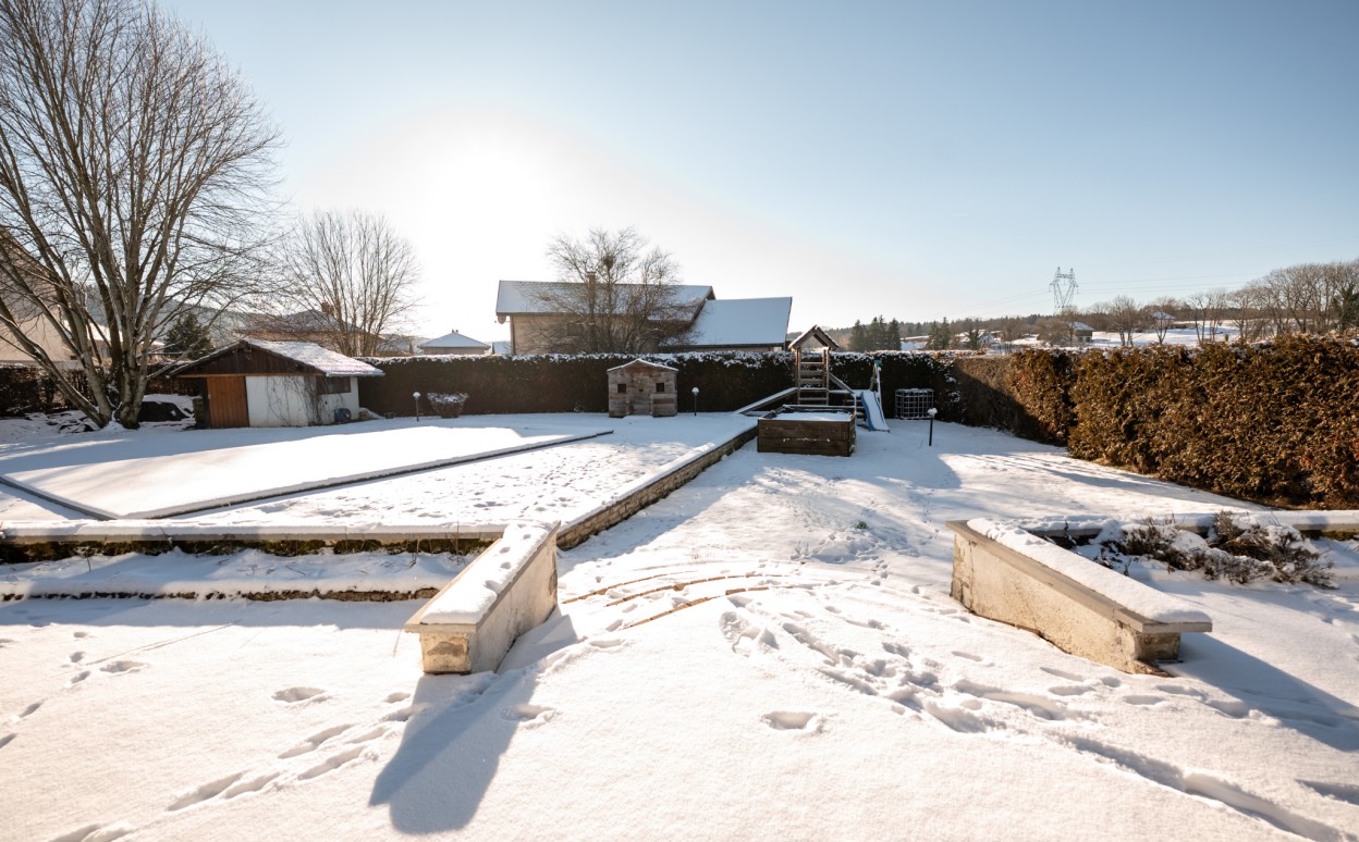 10 Km de PONTARLIER - VAL D'USIERS - SOMBACOUR : Maison de plain pied de 150m2 coprenant entrée, cuisine ouverte sur vaste séjour avec accès sur véranda de 27 m2 avec baie vitrée à galandage, bureau, buanderie, cellier, 3 chambres, salle d'eau, wc, garage. Sur une parcelle clos et arborée de 1573m2 avec une piscine de 4 x 8m. DPE en D.