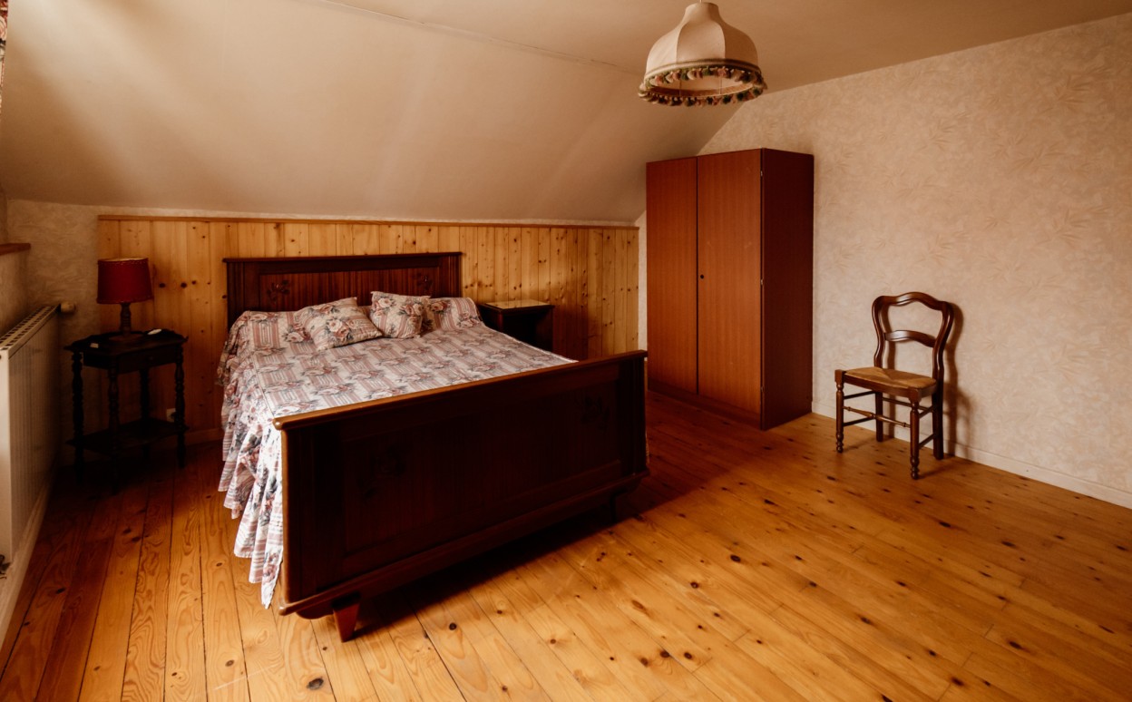 La maison se compose d'une cuisine conviviale, d'un salon-séjour chaleureux, de 5 chambres, d'une salle d'eau et d'une salle de bain. La moitié de la maison est entièrement habitable dès aujourd'hui : vous pouvez poser vos valises immédiatement et vous y sentir chez vous.